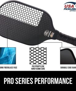 2. SERIE PRO, APROBADO POR USA PICKLEBALL: la paleta está aprobada por USA Pickleball para cumplir con los estándares del torneo; la cara de fibra de vidrio de la paleta es liviana para ayudar a reducir el tiempo de reacción y facilita cambiar entre golpes de derecha e izquierda; bordes reforzados para mejorar la resistencia y el uso duradero; núcleo de panal de polipropileno para una estabilidad adicional.