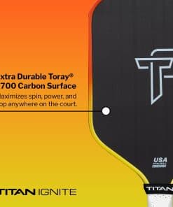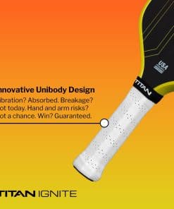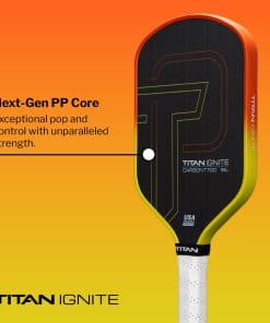 SERVIÉNDOTE LA CHISPA PARA EXCEPCIÓN Enciende al titán que llevas dentro con la paleta que no se trata solo de jugar, sino que sirve la chispa para que sobresalgas en la cancha desde tu primer saque! Diseñada para despertar tu campeón interior, Titan Ignite ofrece una resistencia excepcional y una comodidad incomparable. Es una excelente elección para tu primera paleta de pickleball, ayudándote a llevar tu juego al siguiente nivel.