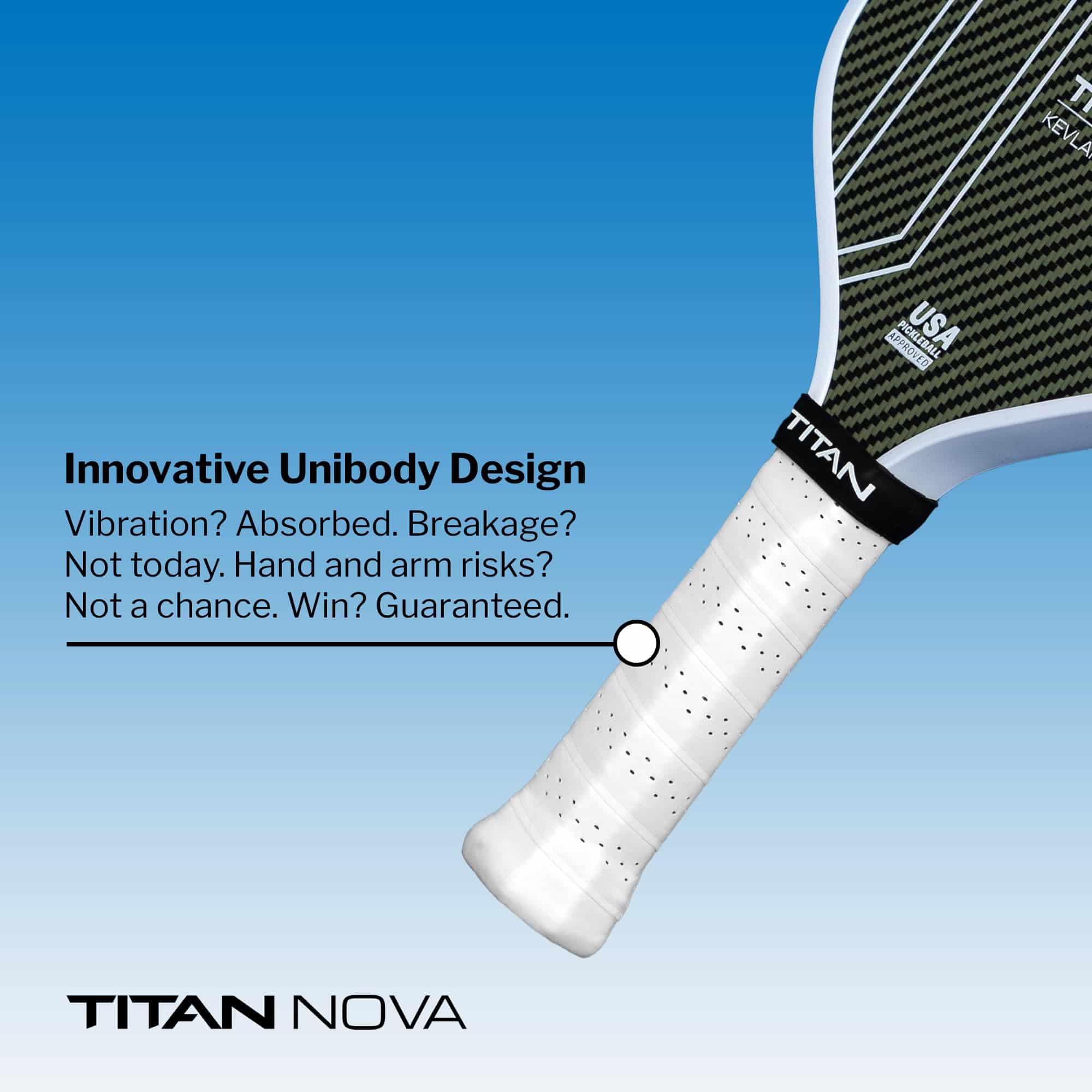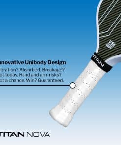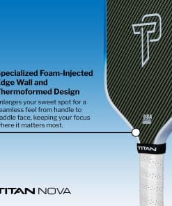 DISEÑADA PARA EL ASPIRANTE A PROFESIONAL Prepárate para liberar tu campeón interior con la Paleta de Pickleball Titan Nova 16L, donde la potencia se encuentra con la precisión. La Paleta de Pickleball Titan Nova 16L ofrece una mezcla perfecta de potencia, giro y control, sin sacrificios ni compromisos. Con nuestra fórmula ganadora, no tendrás que renunciar al rendimiento de giro, control o ese pop electrizante que todos amamos en la pista. Giro, Pop, Dink, Lob, Drive… lo que sea, Nova te tiene cubierto.