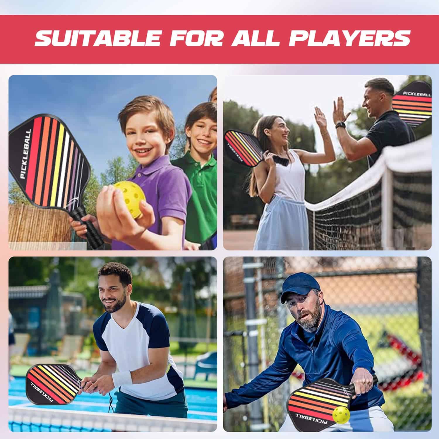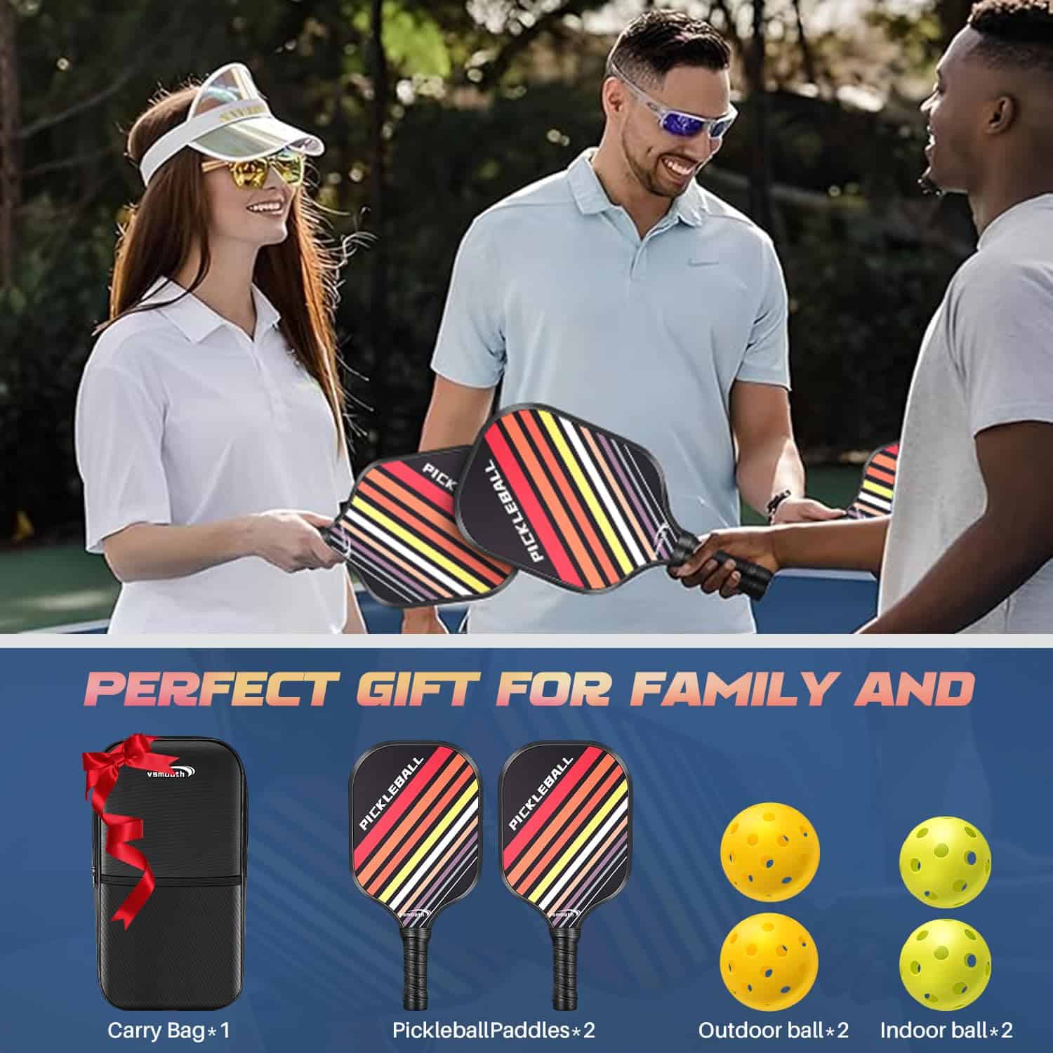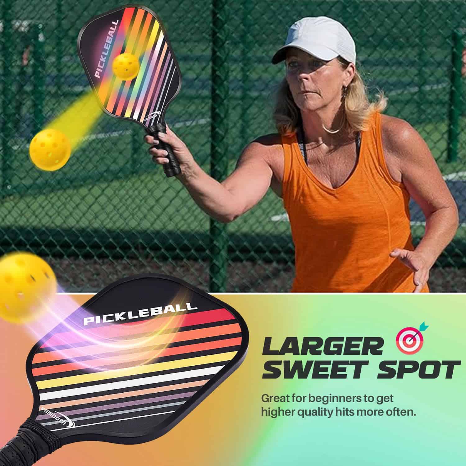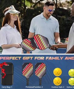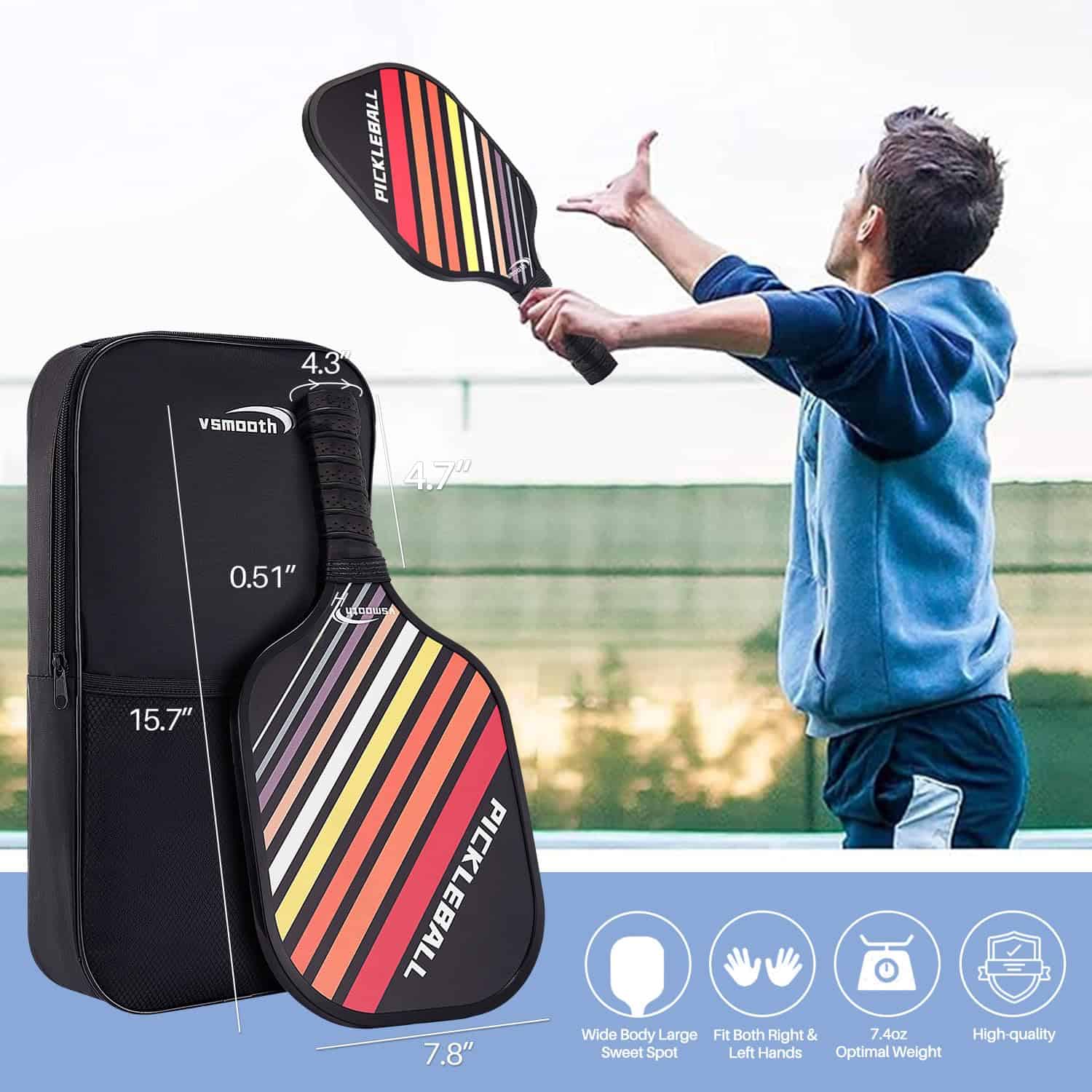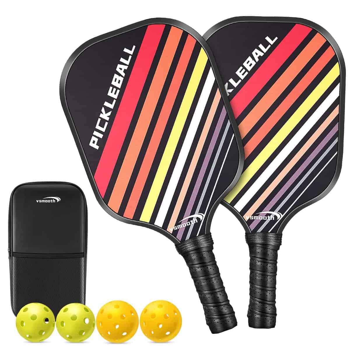 La paleta de pickleball Vsmooth 2024 de SLK Pickleball es una excelente opción para jugadores de todos los niveles. El juego completo de raquetas incluye 2 raquetas de fibra de vidrio de alta calidad, 4 pelotas y un bolso para un fácil transporte. Las 2 selecciones de bola para interiores y 2 para exteriores permiten a los jugadores utilizar el set en una variedad de campos.