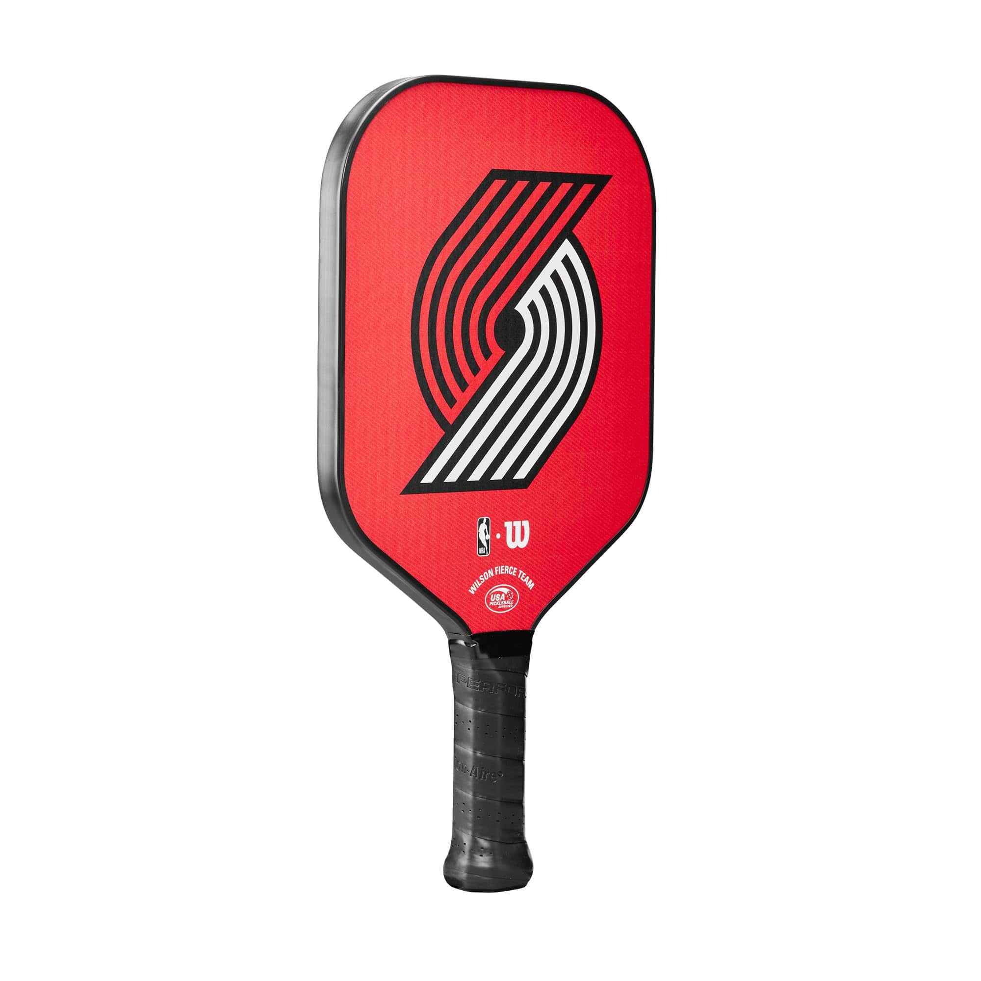 Ahora es posible lucir tu equipo de baloncesto NBA favorito mientras golpeas la cancha de pickleball con la Paleta de Pickleball Fierce Team Portland Trail Blazers de Wilson. Es perfecta para principiantes y jugadores ocasionales que buscan entrar en la cancha, representar a su equipo y jugar con confianza. Su forma híbrida combina lo mejor de ambos tipos de paletas, dándote el control y un punto dulce más grande de un cuerpo ancho y la potencia adicional de una paleta alargada. El núcleo de panal de polipropileno amortigua la vibración y mejora el tacto, y la cara de fibra de vidrio de 13 mm te ayuda a golpear tiros cómodos y consistentes. Esta paleta se ensambla en los Estados Unidos con piezas estadounidenses e importadas.
