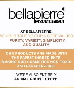 5. CALIDAD BELLAPIERRE: En Bellapierre, nos mantenemos fieles a nuestros 4 valores fundamentales: pureza, variedad, simplicidad y calidad. Eso se debe a que nuestros productos están hechos con ingredientes seguros, lo que hace que nuestros cosméticos sean no tóxicos y libres de parabenos. También somos completamente libres de crueldad animal. ¡Experimenta nuestros cosméticos de moda por ti mismo al ordenar hoy!