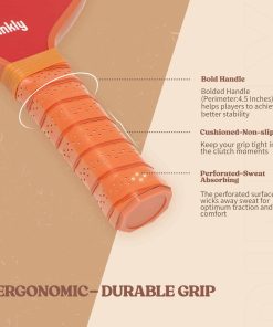 2. Agarre Ergonómico y Cómodo, el mango de 4.25 pulgadas se adapta naturalmente a tu mano, mejorando el giro y control. Con una longitud de 4.9 pulgadas, aumenta la potencia en los saques. El agarre transpirable y antideslizante garantiza un agarre firme y libre de sudor durante el juego intenso.