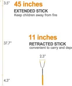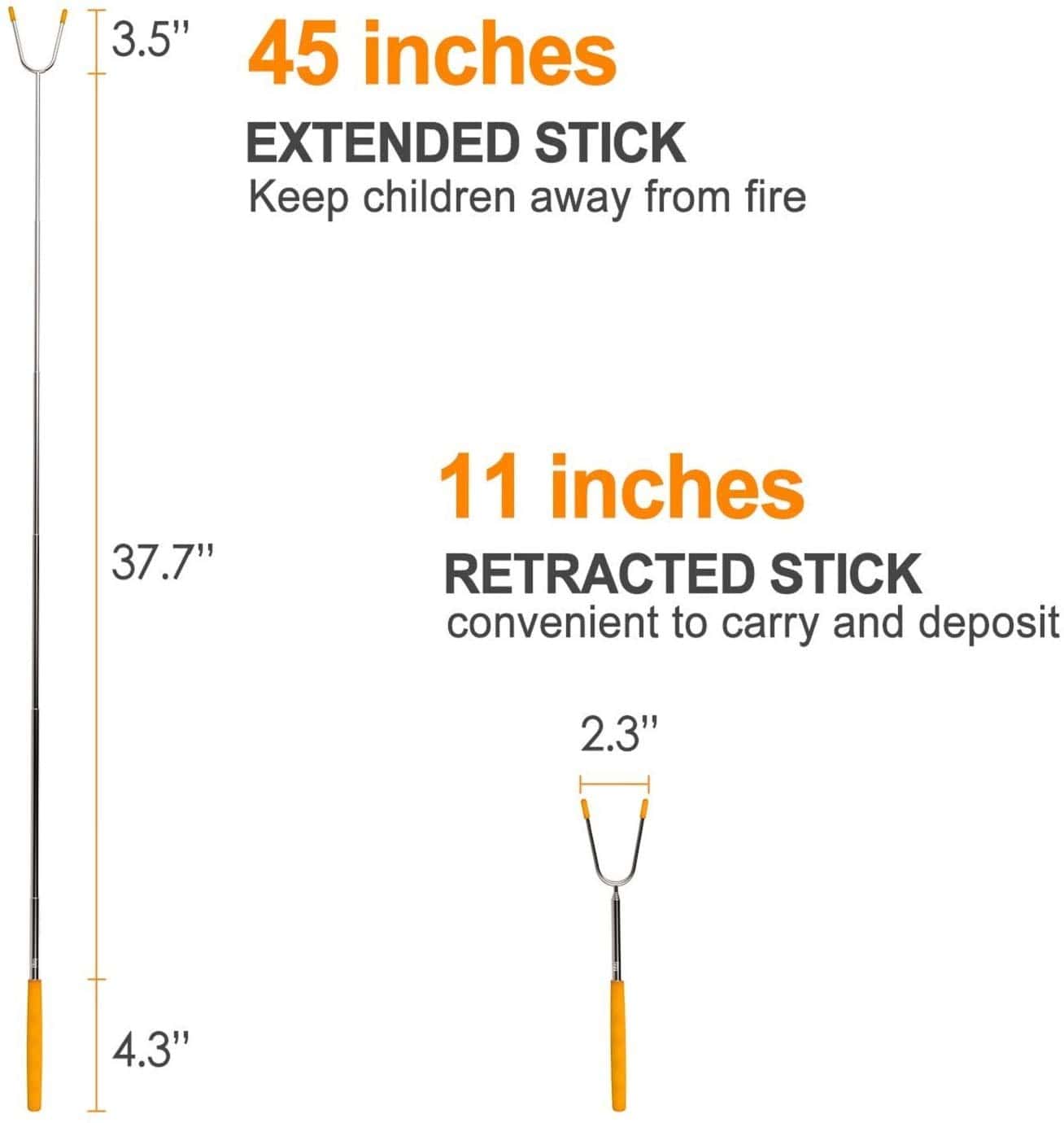 2. ESPECIALMENTE SEGURO Y SALUDABLE: el extensible telescópico de 45 pulgadas mantiene una distancia segura relativa de quemaduras y chispas, permitiéndote a ti y a tu familia disfrutar de una fogata segura y feliz; el palo para asar de acero inoxidable es extremadamente saludable sin sustancias dañinas.