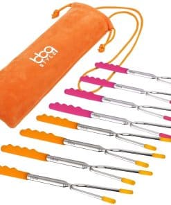 Ahora, nunca más te decepcionarás con este set de palillos portátiles telescópicos para asar malvaviscos en mano. El juego de 8 palillos es suficiente para que un pequeño grupo se una en la diversión de una fogata.
