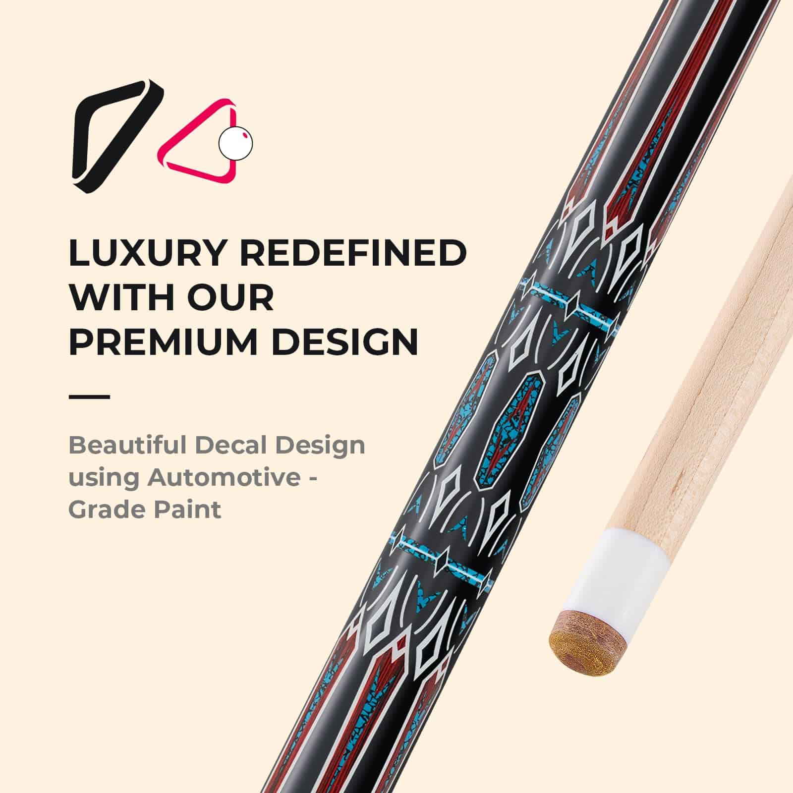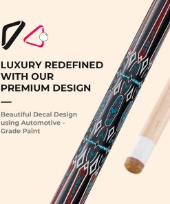 3. Diseño Hermoso: El palito de billar CUESSIR Unicues para pool y billar tiene una longitud de 58″ y un peso entre 19oz-20oz. Viene con un hermoso diseño de calcomanía pintado con pintura de grado automotriz de larga duración. Tiene una punta de 12.5mm hecha de 6 capas de piel de cerdo, perfecta para nueve bolas y se puede utilizar para snooker.