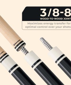 2. Junta de Madera a Madera: El palito de billar CUESSIR Unicues viene con una junta de madera a madera de espiga radial 3/88, que permite la transferencia máxima de energía desde el butt hasta la punta del palito de billar. Siente la potencia corriendo cuando golpeas la bola.