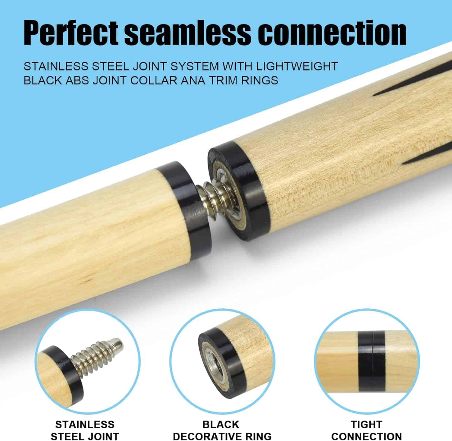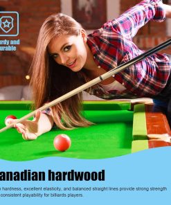 Este palo de billar de alta calidad está hecho de madera de billar de buena elasticidad, con un agarre cómodo y una transmisión estable de fuerza, lo que le permite estar más preparado para golpear la bola. Especificaciones: punta de cuero de 13mm. Longitud de 58″. Peso de 20oz. Pasador de 5/16 x18. Eje de madera de arce canadiense de media desviación.