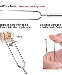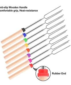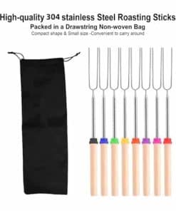 Los Palos para Asar Malvaviscos son la herramienta perfecta para disfrutar de deliciosas golosinas asadas en cualquier ocasión al aire libre. Están fabricados con palos de acero inoxidable de alta calidad y un mango de madera antideslizante que garantizan resistencia y durabilidad. El diseño retráctil permite ajustar la longitud de los tenedores según sea necesario, protegiendo tus manos del calor del fuego. Las puntas dobles de los tenedores aseguran que los alimentos permanezcan firmemente en su lugar durante la cocción. El mango antideslizante proporciona un agarre cómodo y seguro, previniendo quemaduras. Una vez que hayas terminado de usar los Palos para Asar Malvaviscos, podrás limpiarlos fácilmente sumergiendo las puntas en agua tibia con jabón. Aprovecha al máximo tus reuniones al aire libre con estos prácticos tenedores para barbacoa.