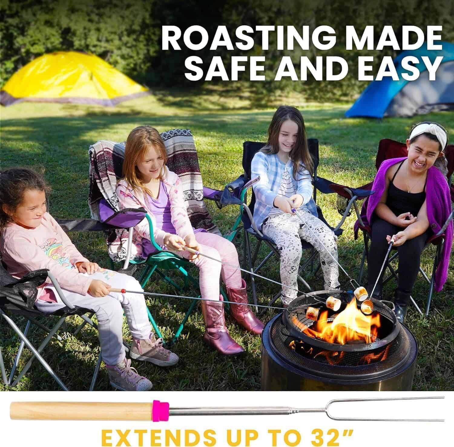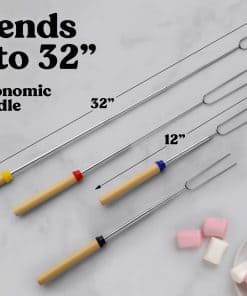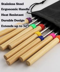 Ninguna fogata está completa sin algunos malvaviscos perfectamente asados y para eso están los Palos Telescópicos para Asar Malvaviscos de Zulay. Hechos con acero inoxidable 304 no tóxico y tratado térmicamente, este kit de malvaviscos para fogatas es perfecto para asar malvaviscos tanto para aventuras de fogatas en interiores como en exteriores. Con características extensibles y plegables, puedes usar estos palitos para asar mientras mantienes una buena distancia del calor. Nuestros palitos para asar malvaviscos son ideales para dejar que los niños disfruten de la fogata. Está hecho con tenedores no filados y un mango de madera cómodo para un agarre firme y seguro. El Paquete de Palos Telescópicos para Asar Malvaviscos Zulay viene con tenedores coordinados por color para que no tengas que preocuparte por que tus hijos peleen por el tiempo de asado. Los palitos ligeros de fogata son reutilizables y se pueden empacar fácilmente en una bolsa con cordón. Es una excelente adición a los accesorios de campamento, artículos esenciales para campamento, accesorios de glamping, accesorios de fogata para exteriores, equipos de cocina para fogatas y cocinas de campamento. Usa estos palitos para malvaviscos para fogatas, palitos para perros calientes para fogata, pinchos para kebabs, pinchos para entremeses, pinchos para asar a la parrilla, palitos para perros calientes para fogata, pinchos para parrilla al aire libre, pinchos shish kebab, pinchos para barbacoa y pinchos de metal. Haz que la aventura de tus seres queridos sea dulce sorprendiéndolos con estos palitos como regalo de cumpleaños, regalo de Navidad, regalo de Acción de Gracias, regalo del Día de San Valentín, regalo de aniversario, regalo del Día de la Madre, regalo del Día del Padre, regalo de inauguración de la casa y regalos de camping.