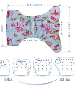 Recomendación de peso mínimo: 6.6 libras. Recomendación de peso máximo: 33 libras. Tamaño ajustable, pueden ser pequeños, medianos y grandes. Los pañales de tela T DIAPERS se ajustan a la mayoría de los bebés de 6.6 a más de 33 libras. Largo del pañal: 15 pulgadas de longitud x 13 pulgadas de ancho.