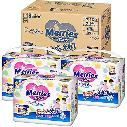 Pañales de entrenamiento de alta calidad de la marca Kao Merry’s Smooth Skin Air Through en tamaño grande. Cada paquete contiene 26 piezas y vienen en un paquete de 3. Estos pañales están diseñados para un peso de 15-28KG y ofrecen comodidad y protección durante el proceso de entrenamiento para ir al baño. ¡Compra ahora y mantén a tu bebé seco y cómodo durante todo el día!