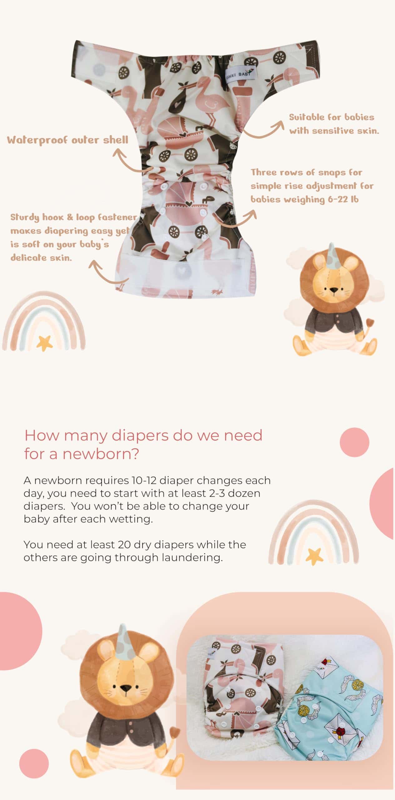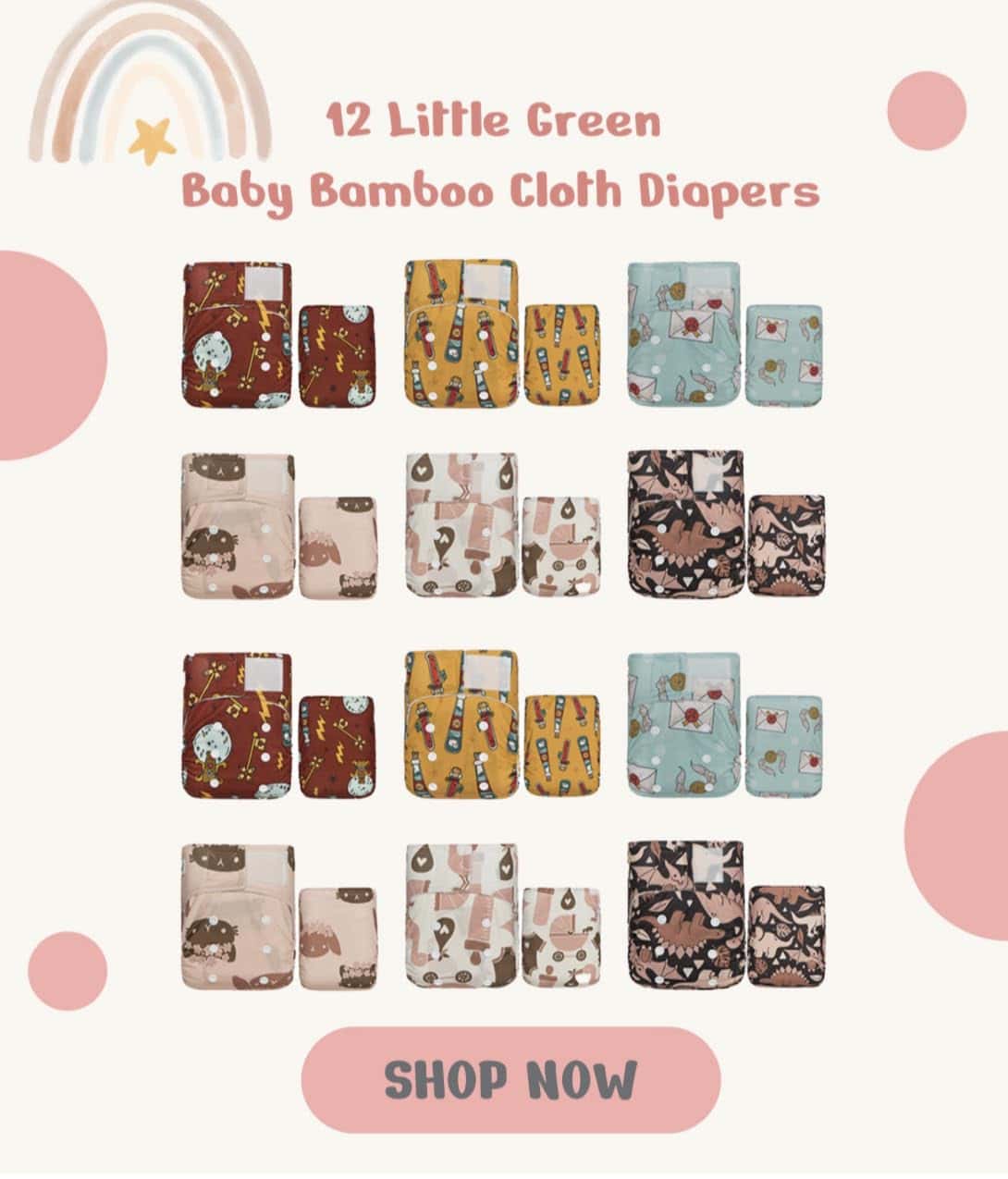 Los pañales de tela de bambú para bebés KaWaii Baby Little Green son una opción amigable con el medio ambiente para el cuidado del bebé. Este set incluye 12 pañales de bambú suaves y transpirables, diseñados para adaptarse a bebés recién nacidos hasta 22 lbs. Cada pañal viene con su propio inserto de bambú para mayor absorción y comodidad. Hechos con materiales de alta calidad, estos pañales son reutilizables, lavables a máquina y respetuosos con la piel sensible del bebé. ¡Cuida del planeta y de tu bebé con estos pañales de tela de bambú de KaWaii Baby!
