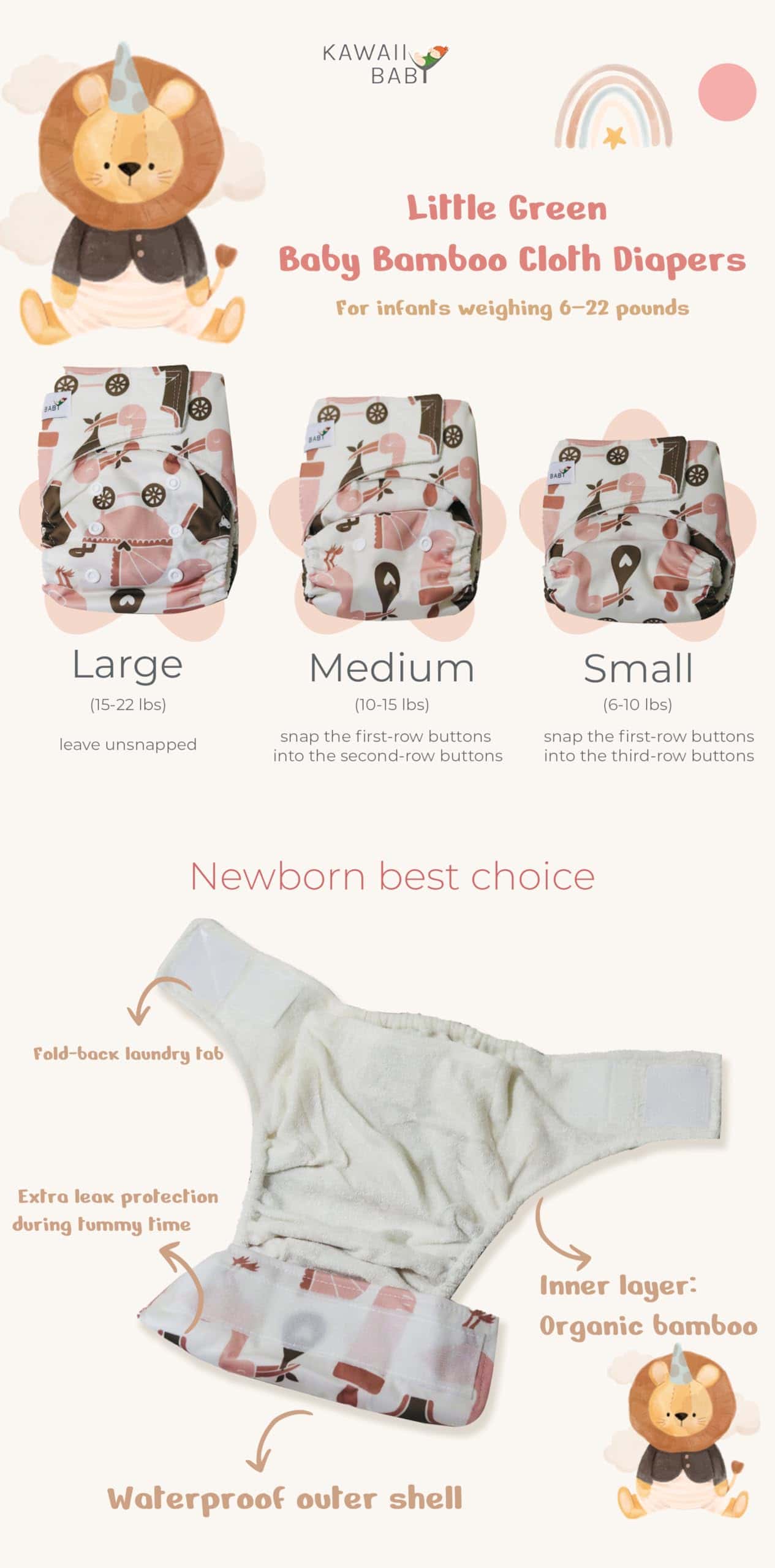 Pañales de tela de bambú para bebés KaWaii Baby Little