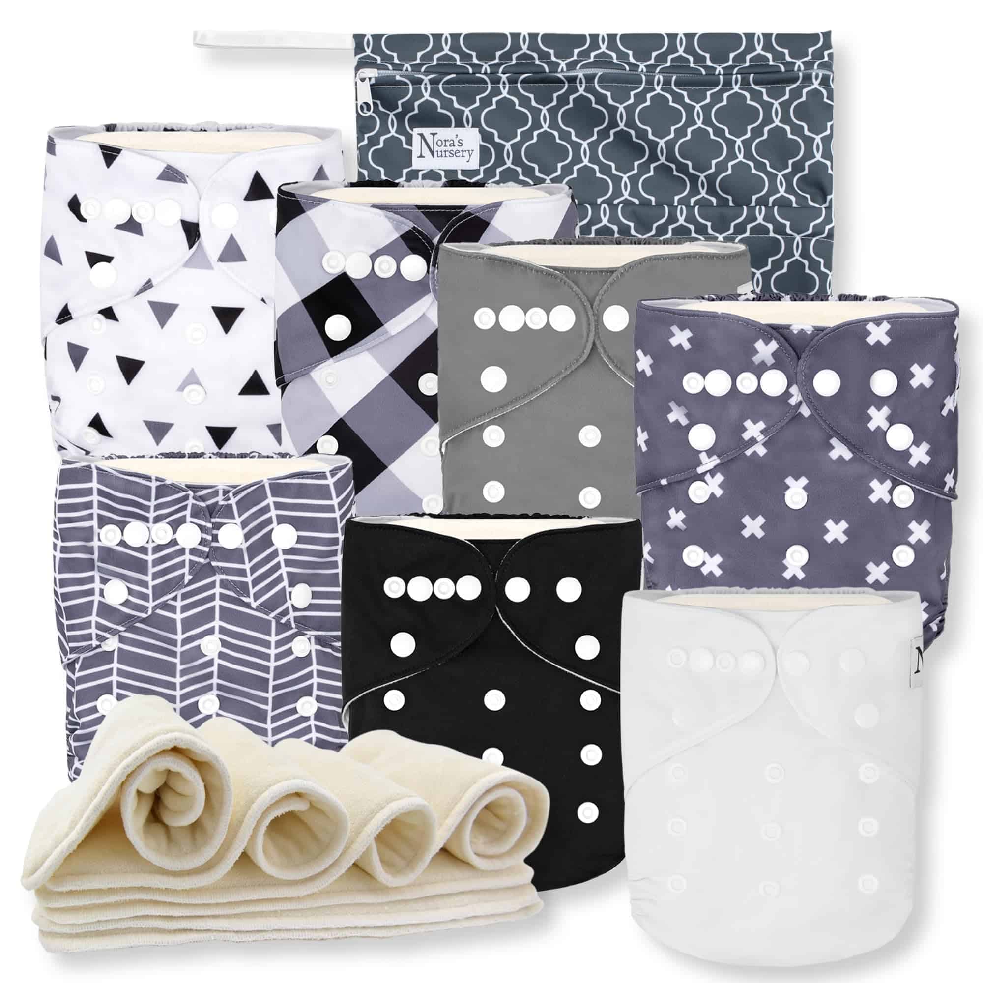 Pañales de tela para bebé Nora’s Nursery 7 Pack + 1 Bolsa
