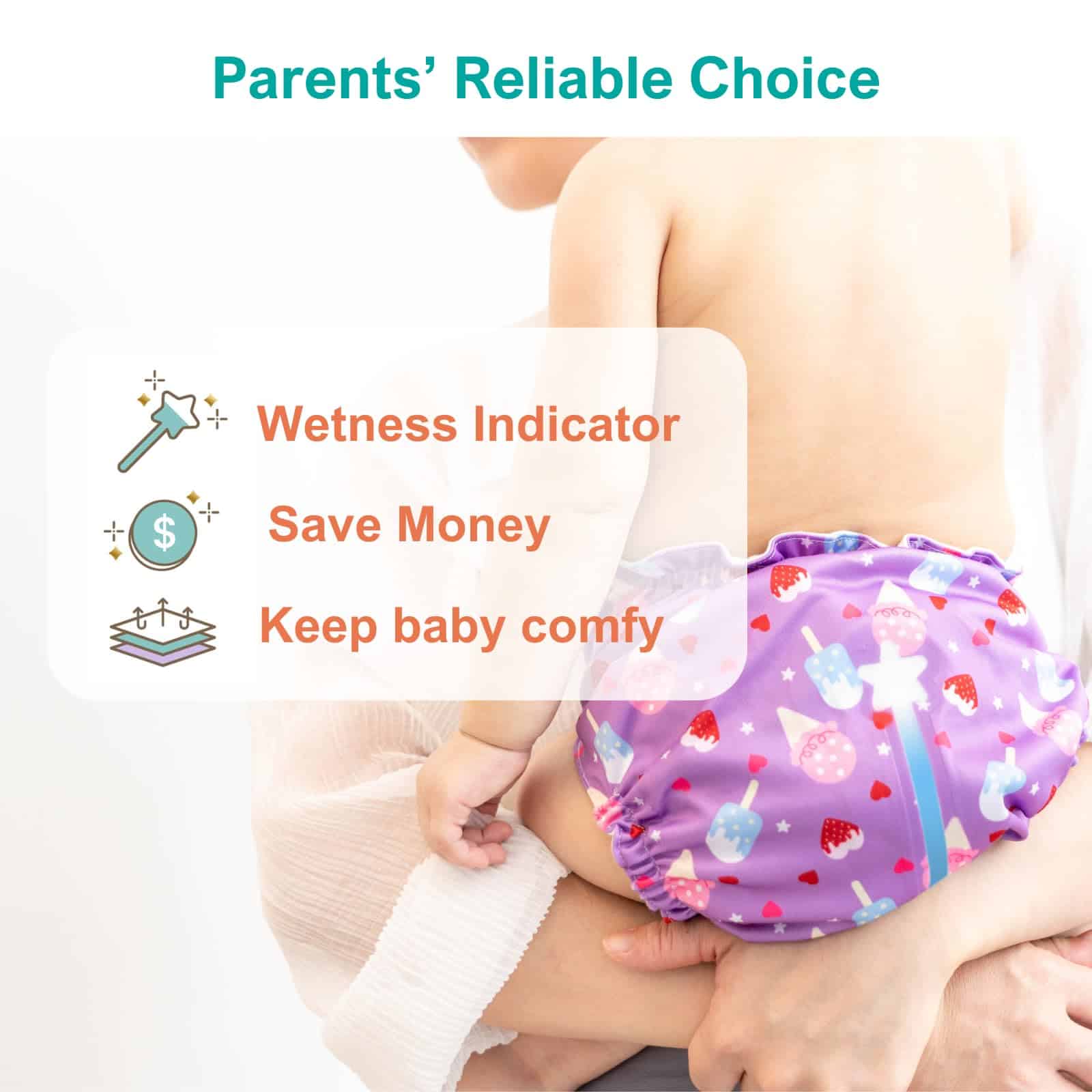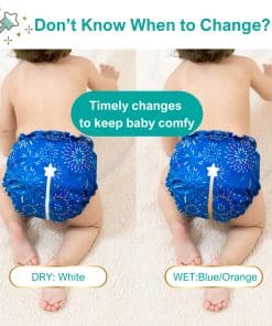 1. INNOVADOR INDICADOR DE HUMEDAD: ¡Sepa exactamente cuándo su bebé necesita un cambio! El pañal de tela reutilizable de Fairywell cuenta con un exclusivo indicador de humedad que cambia de blanco a azul/naranja cuando está húmedo, haciendo que los cambios de pañal sean fáciles y manteniendo a su bebé cómodo y contento.