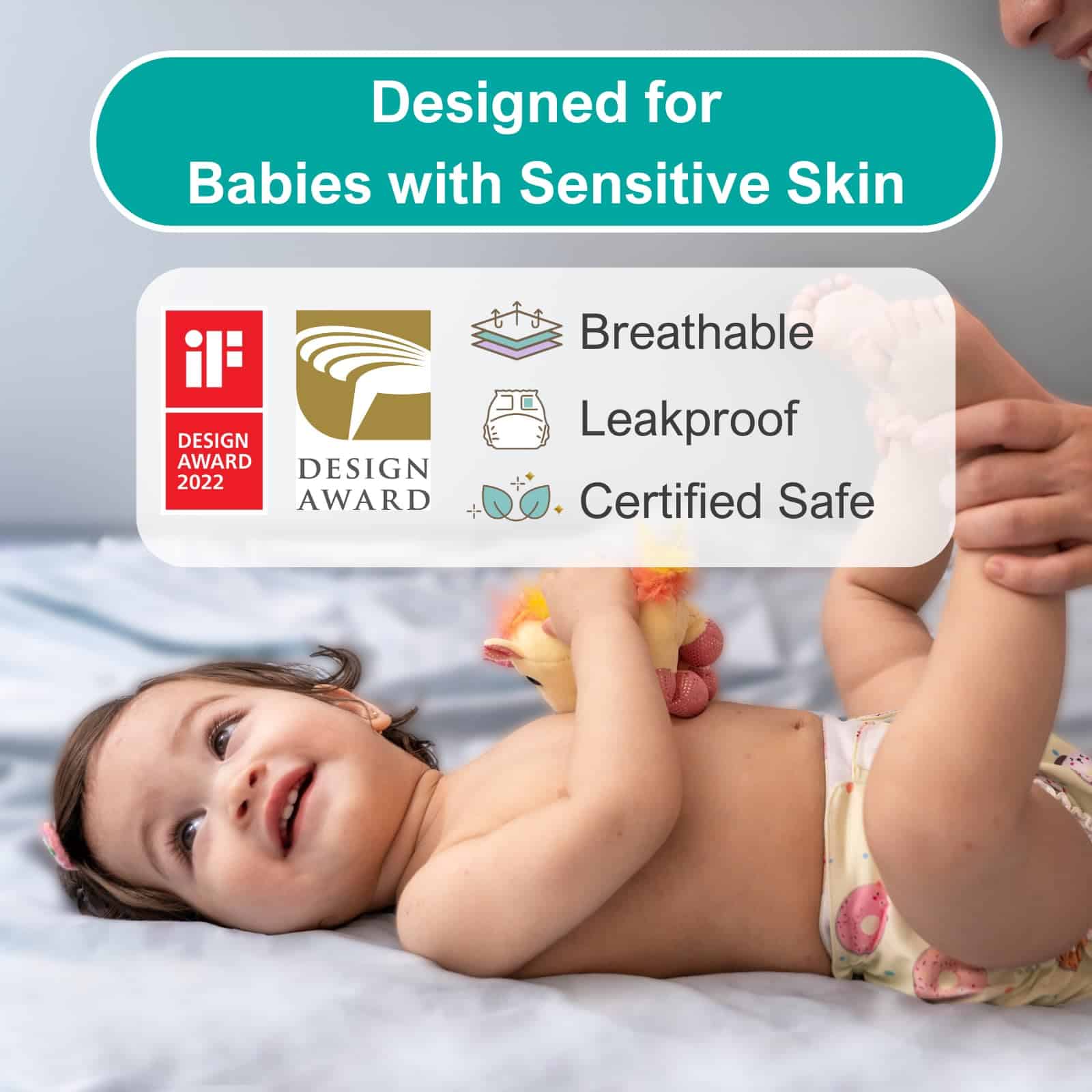 3. MATERIALES SUAVES Y AMIGABLES CON LA PIEL: Hechos de materiales premium suaves para la piel del bebé, los pañales Fairywell ofrecen una protección confiable contra fugas y desorden. Son lavables a máquina, están fabricados para durar y son seguros para los bebés.