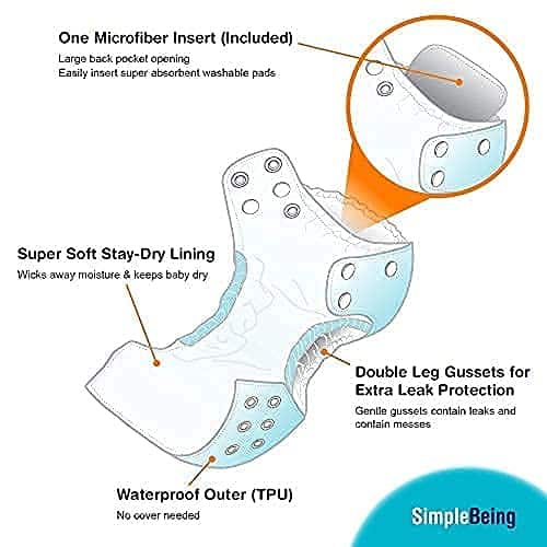Paquete de pañales todo en uno que crece con tu pequeño! Cinco filas de broches ajustables que permiten una talla pequeña/mediana/grande en un solo pañal de tela, se adapta desde recién nacidos hasta niños pequeños. El interior de microfibra gris claro ayuda a ocultar las manchas y es suave al tacto, forrado para evitar rozaduras o sarpullidos. Hecho de tela de alta calidad que absorbe la humedad lejos de la delicada piel del bebé. ¡Ultra absorbente para que la piel de tu bebé se mantenga seca! Ahorra dinero y es ecológico: los pañales de tela son reutilizables y la mejor opción libre de químicos para tu bebé, evita tirar dinero con cada cambio de pañal.