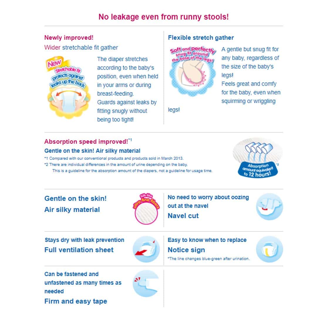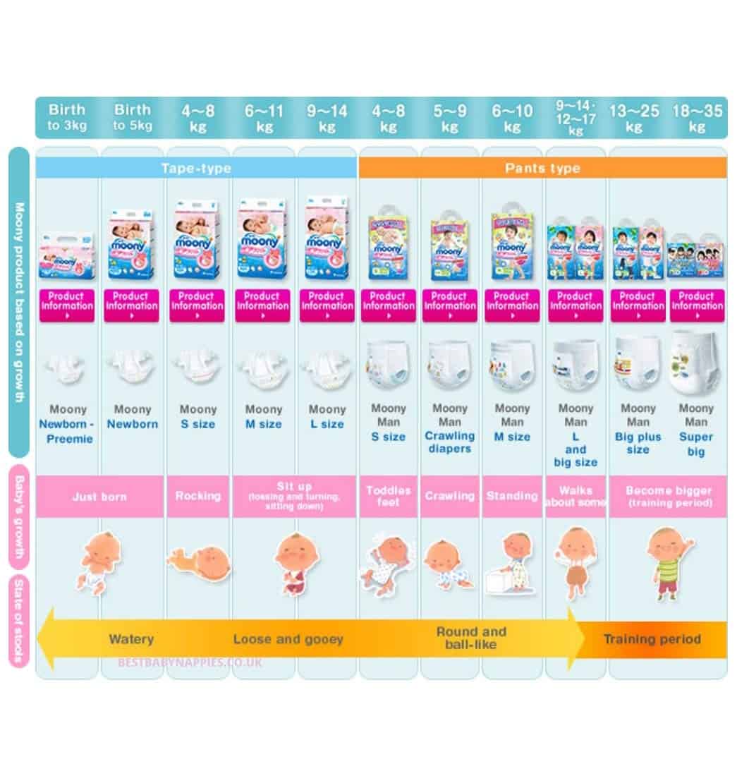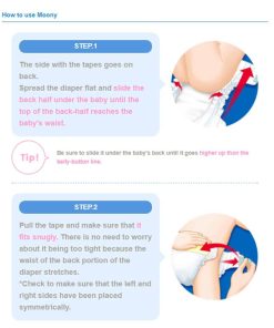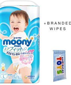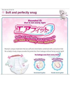 INSPIRADOS en Moony y Moony man, los productos tienen cualidades gentiles superiores que están diseñadas para adaptarse a todas las etapas del crecimiento de tu precioso hijo. Es por eso que hemos llegado al fondo de todo el cuidado que se pone en los productos Moony y Moony man. Informaremos sobre las mentes inquisitivas de los desarrolladores y sus deseos que pusieron en su producto, para ti y tu bebé. CARACTERÃSTICAS: ¡NUEVA TECNOLOGÃA! ¡Diseño de cintura alta de cobertura completa! ¡Se ajustan exactamente a los muslos internos del bebé, por lo que no hay espacio para fugas incluso con bebés activos! ¡Súper absorbentes, altamente transpirables y ultra suaves para que tu bebé activo se mantenga seco y cómodo! ¡Absorbe instantáneamente y retiene la orina, dejando la superficie del pañal más seca para un uso más prolongado! Se mantiene seco con prevención de fugas. ¡Incluso los bebés con alta temperatura corporal y que tienden a sudar mucho, este pañal puede mantener su trasero seco! La limpieza es sencilla con la cinta de enrollar. Enrolla un pañal con la superficie sucia hacia adentro y usa la cinta en la parte posterior para sujetar. La línea indicadora de aviso cambiará a color verde azulado, para que sepas cuándo cambiar el pañal. No se adhiere a la piel de tu bebé, para que se mantenga seco y cómodo. Ajuste perfecto en todas las posiciones, estira suavemente alrededor de la cintura de tu bebé. ¡Sin marcas rojas o abrasiones en la zona de la entrepierna! DESCRIPCIÓN: La exclusiva columna absorbente de doble canal de Moony absorbe instantáneamente y retiene la orina, dejando la superficie del pañal más seca para un uso más prolongado. La suave hoja superior ondulada transpirable no se adhiere a la piel de tu bebé, para que se mantenga seco y cómodo. Los suaves pliegues aireados se ajustan perfectamente en todas las posiciones. Los calzoncillos Moony se estiran suavemente alrededor de la cintura de tu bebé. Están hechos con material suave y transpirable que garantiza la sequedad alrededor de la cintura, donde tu bebé tiende a transpirar fácilmente. ¡Deja que tu bebé activo juegue con el máximo confort!