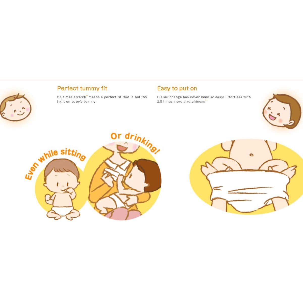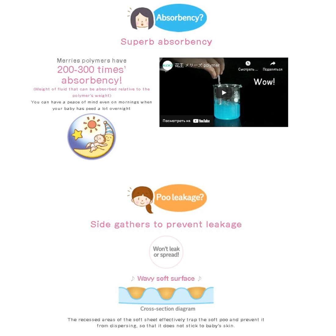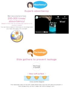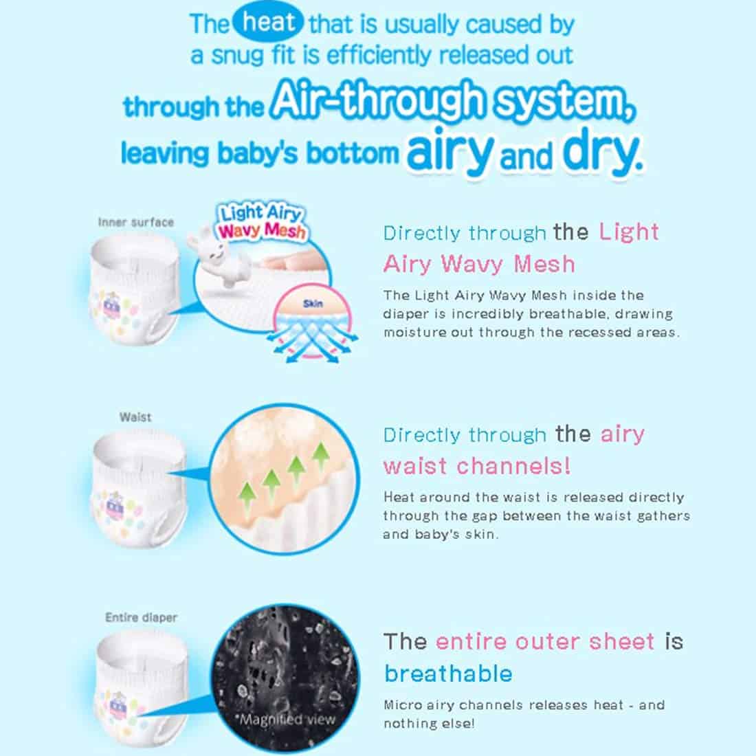 DESCRIPCIÓN INSPIRADA «Merries» proviene de la palabra inglesa «merry», que significa alegre y sonriente. También está inspirado en el móvil musical giratorio alegre colgado sobre la cuna de los bebés para hacerlos sonreír las 24 horas del día, los 365 días del año. Merries quiere que los bebés estén felices, cómodos y sonrientes. Creemos que los momentos felices que pasan juntos los bebés felices y los padres felices son vitales para el crecimiento y desarrollo del bebé. Merries innovará constantemente para ayudar a los padres a disfrutar de sus años de crianza y asegurar que sus bebés vivan tan felices y cómodamente como sea posible. CARACTERÃSTICAS: ¡NUEVA TECNOLOGÃA! Se estira 2.5 veces más en comparación con antes de estirarse (según la investigación de KAO). ¡Súper absorbente, altamente transpirable y ultra suave para que su bebé activo se mantenga seco y cómodo! ¡Absorbe instantáneamente y retiene la orina, dejando la superficie del pañal más seca para un uso más prolongado! Los polímeros en los pañales Merries pueden absorber hasta 200-300 veces el peso de líquido en relación con su peso. ¡Puede quedarse tranquilo incluso en las mañanas en las que su bebé ha orinado mucho durante la noche! ¡La superficie ondulada atrapa y retiene las heces! Las áreas hundidas de la sábana suave atrapan eficazmente las heces blandas y evitan que se dispersen. ¡Bloquee las fugas con dobles recolectores! El recolector lateral en 3D evita las fugas laterales. Los recolectores traseros para un ajuste ceñido ayudan a evitar las fugas para las tallas S, M, L, XL. ¡Cuando las tiras cambian de color a azul oscuro, es hora de cambiar el pañal! No hay diseño alrededor de las tiras, lo que facilita ver cuando cambia el color. Las esquinas están redondeadas y hechas de un material suave que es suave y no raspa la piel del bebé. ¡Y el sello reutilizable es tan conveniente! ¡Recolectores alrededor de las piernas! ¡Se ajusta perfectamente alrededor de las piernas del bebé! Se ajusta cómodamente en todas las posiciones, se estira suavemente alrededor de la cintura de su bebé. ¡Sin marcas rojas o abrasiones en el área de la entrepierna!