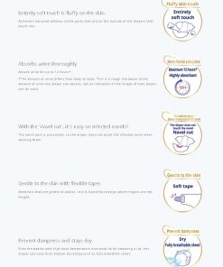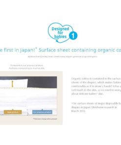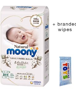 ¡Natural Moony es seguro incluso en la piel de un recién nacido! Natural Moony, el primer pañal de Japón con una lámina superficial hecha con algodón orgánico ¡Utiliza 5 técnicas de diseño diferentes para que sea más suave para la piel de tu bebé! CARACTERÃSTICAS: ¡NUEVA TECNOLOGÃA! ¡Diseño de cintura alta de cobertura total! ¡Coinciden exactamente con los muslos internos del bebé para que no haya espacio para fugas incluso con bebés activos! ¡NUEVA TECNOLOGÃA! ¡Solo enrolla los monos! 3 tiras de notificación te permiten verificar la humedad de los pañales sin tener que deshacer ningún botón adicional. ¡NUEVA TECNOLOGÃA! Incluye 3 tipos de aceites derivados de plantas: aceite de oliva, aceite de jojoba y aceite de arroz. También está hecho con materiales que son suaves en la piel delicada de tu bebé. ¡NUEVA TECNOLOGÃA! ¡Atrapa las heces liquidas que podrían irritar la piel de tu bebé utilizando una zona de absorción de textura desigual! ¡Absorbe rápidamente y lejos de la piel. Súper absorbente, altamente transpirable y ultra suave para que tu bebé activo se mantenga seco y cómodo! ¡Absorbe instantáneamente la orina y la mantiene alejada, dejando la superficie del pañal más seca para un uso más prolongado! Se mantiene seco con prevención de fugas. ¡Incluso los bebés con alta temperatura corporal y propensos a sudar mucho, este pañal puede mantener su trasero seco! La limpieza es sencilla con la cinta de rollo. Enrolla un pañal con la superficie sucia por dentro y usa la cinta en la parte trasera para sujetarlo. La línea del indicador de notificación cambiará de color verde azulado, para que sepas cuándo cambiar el pañal. No se adhiere a la piel de tu bebé para que se mantenga seco y cómodo. Se ajustan perfectamente en todas las posiciones, se estiran suavemente alrededor de la cintura de tu bebé. ¡Sin marcas rojas ni abrasiones en la zona de la entrepierna!