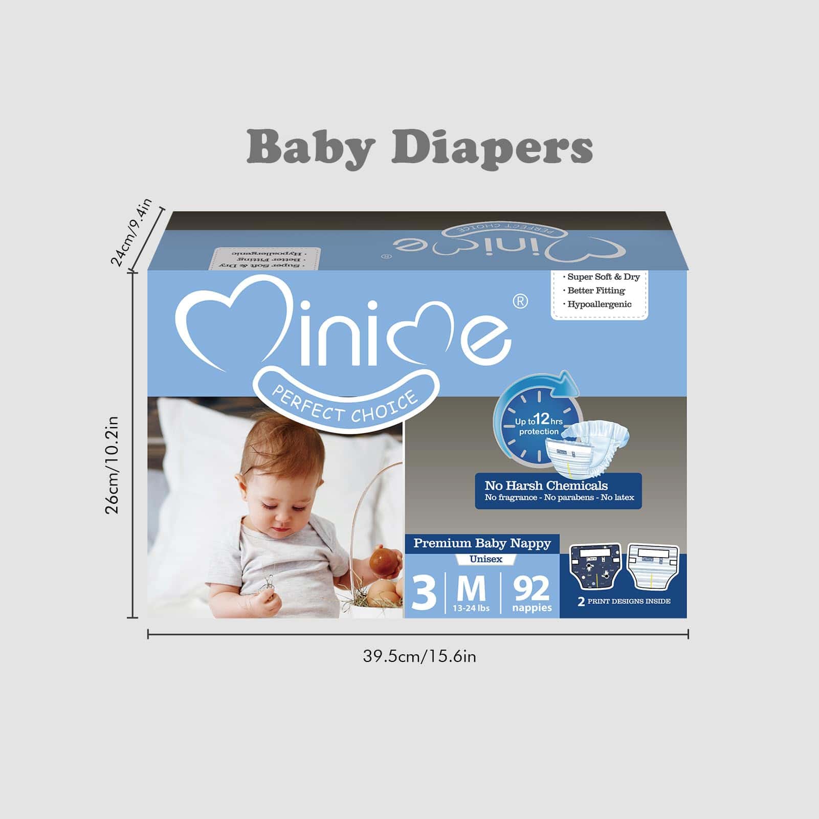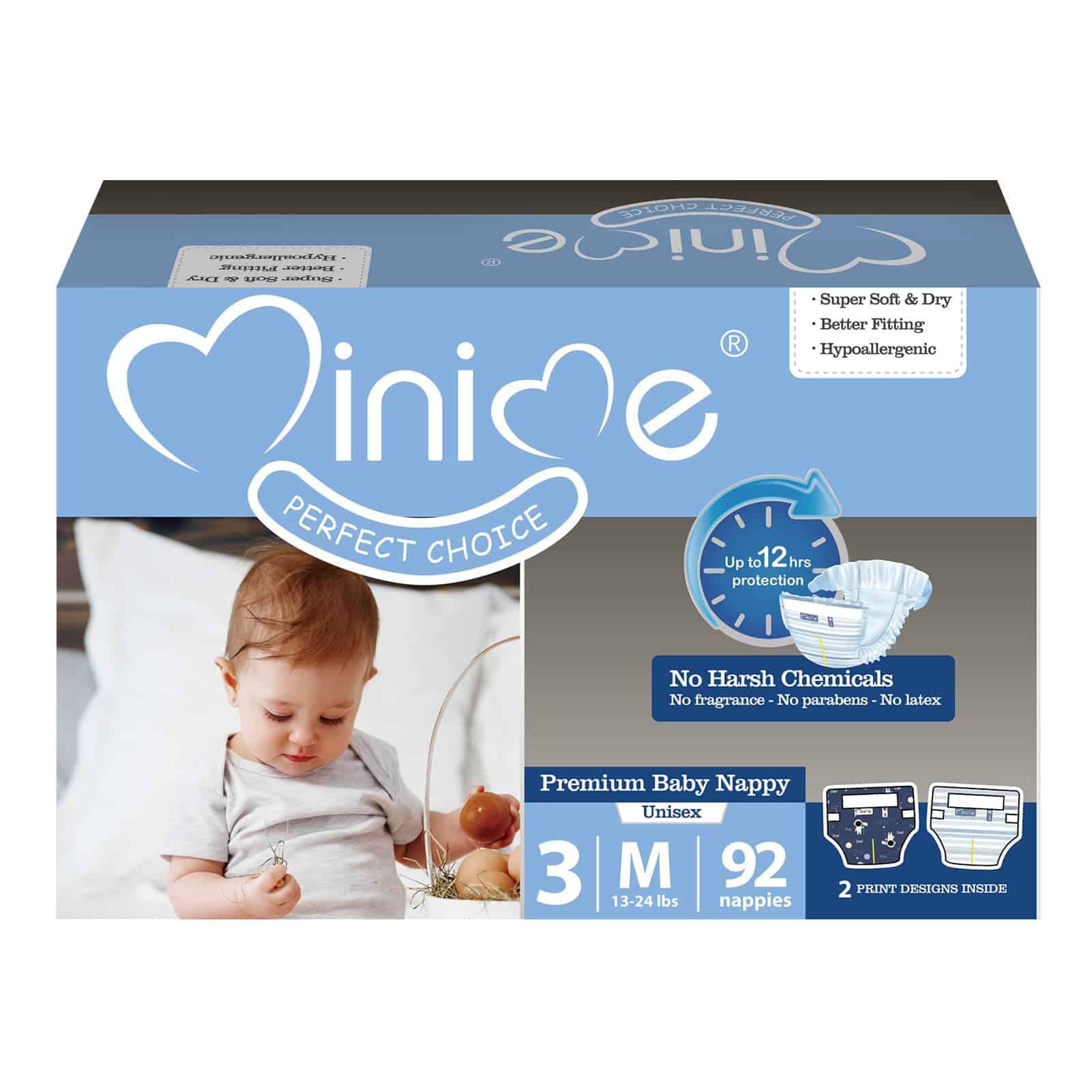 Pañales para Bebé Minime – Talla 3 (13-24 lbs), Mediano, 92