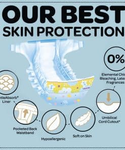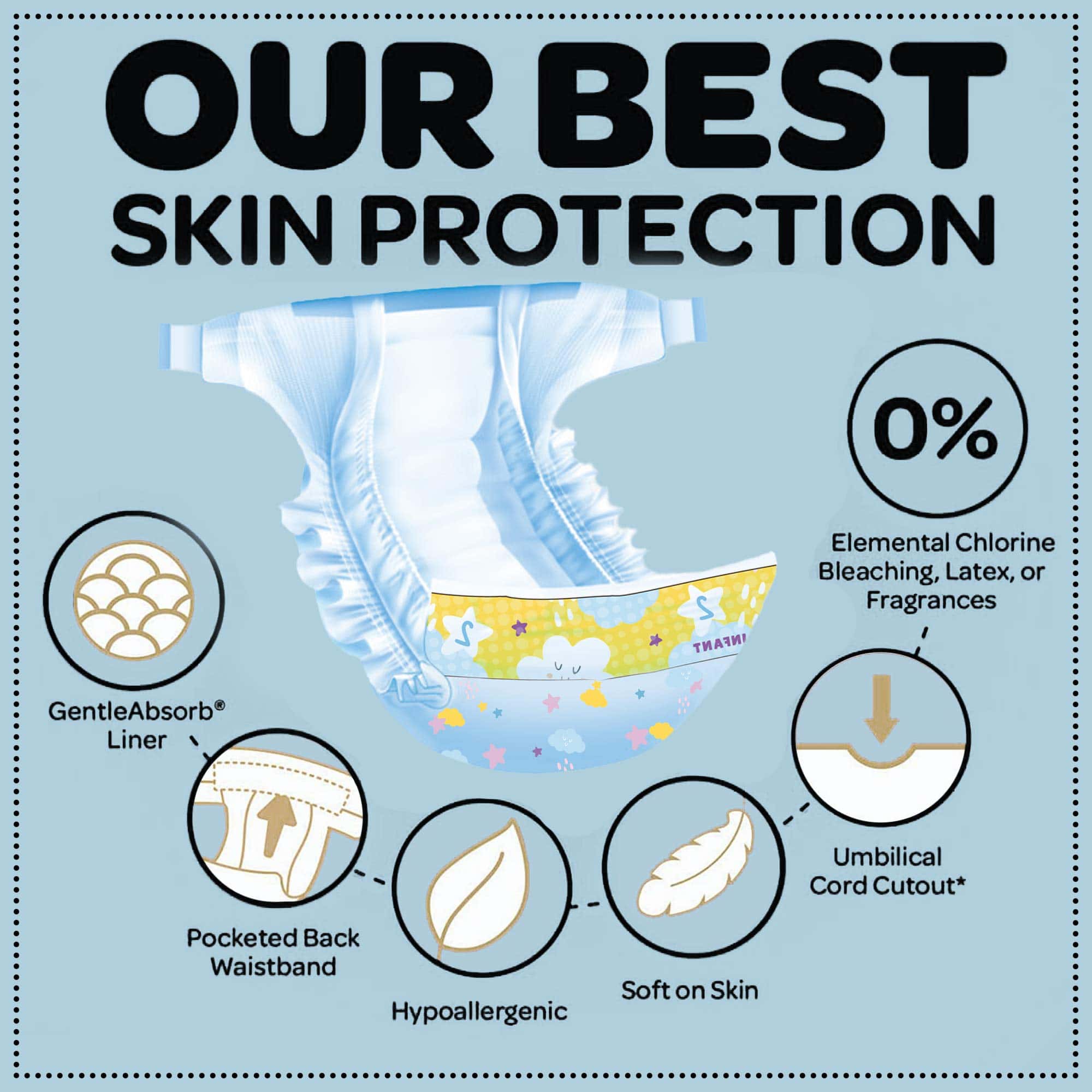 3. DISEÑADO PARA LA COMODIDAD DEL BEBÉ Además de nuestro protector contra fugas de 12 horas y diseño sin químicos, este pañal de día + noche asegura que el bebé esté LO MÁS CÓMODO POSIBLE. Nuestros pañales reales incluyen un CORTE DE CORDÓN UMBILICAL sin fricción, cintura trasera con bolsillo y un SISTEMA DE TALLAS fácil para el ajuste perfecto. Hechos de material súper suave y TRANSPIRABLE, estos pañales para bebés mantienen la piel CALMADA, protegida y feliz.