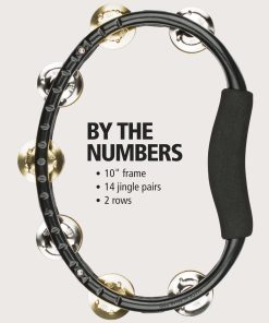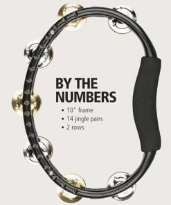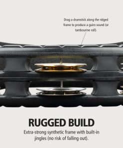 Diseñada para cualquier músico, desde percusionistas y bateristas hasta cantantes y músicos de viento, esta pandereta de mano tiene un tacto equilibrado para agregar fácilmente movimiento o acentos a tu música. 14 pares de platillos mixtos de acero niquelado y latón sólido responden con un ataque brillante y un tono cálido con un volumen potente. Los platillos están montados en una posición especial de «sándwich» con los bordes estriados hacia afuera para un ataque más preciso y una resonancia envolvente. El marco en forma de creciente está hecho con un material sintético ultra duradero que está diseñado para durar. Cuenta con una superficie con forma de guiro estriada que puedes arrastrar un palillo de tambor para efectos de sonido.