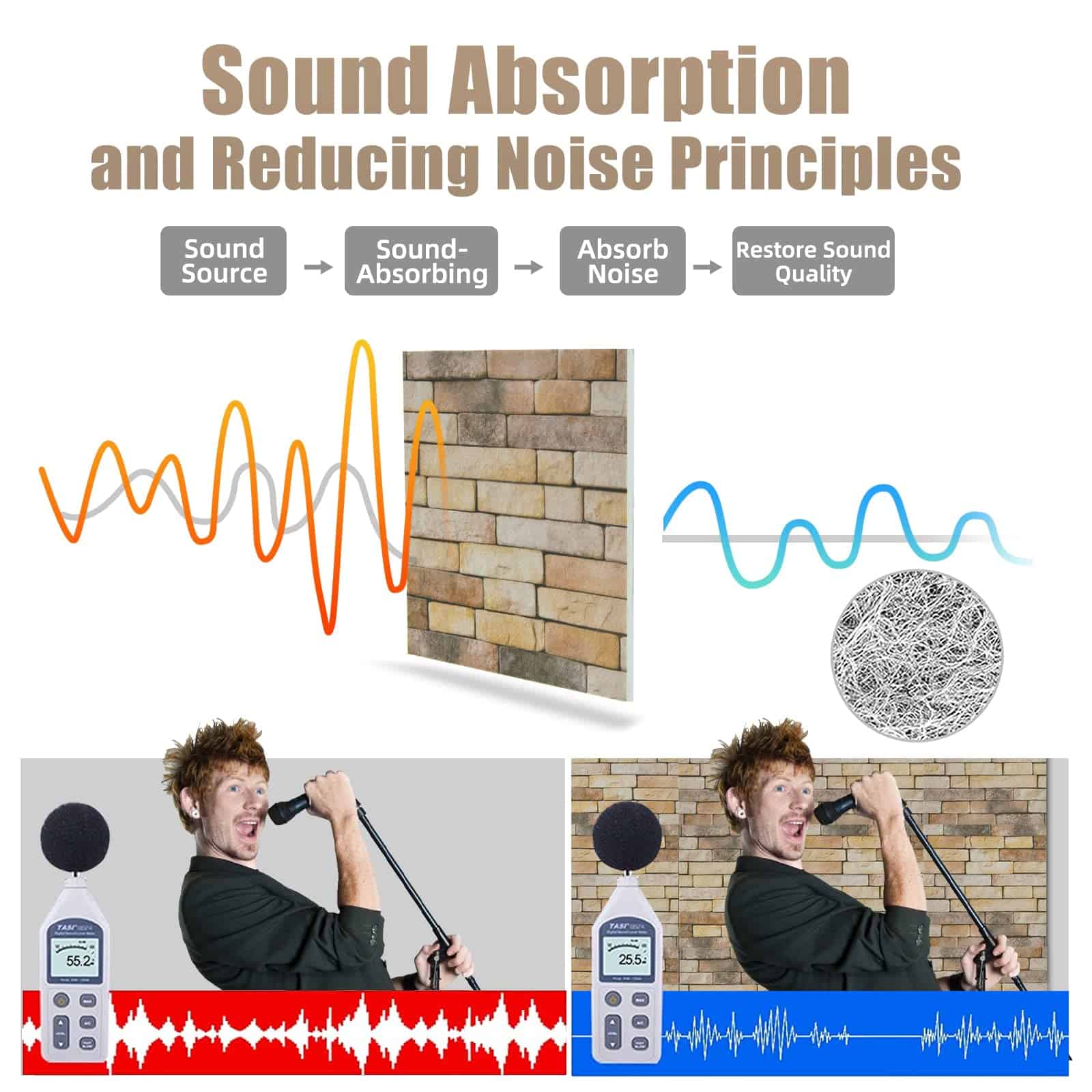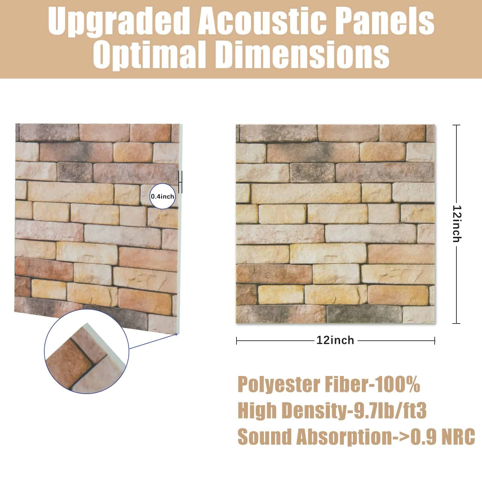 Este panel acústico con patrón de ladrillo actualizado adopta una combinación de patrones de ladrillo simulados y diseños cuadrados, con bordes y esquinas ordenados que facilitan el empalme. También se puede cortar a lo largo de la textura del patrón de ladrillo de los paneles de sonido para adaptarse a la forma de su pared. Integra absorción de sonido, reducción de ruido y decoración. Toda la parte posterior de nuestro panel insonorizante está cubierta con una capa adhesiva autoadhesiva. No necesita comprar herramientas adicionales, simplemente limpie la pared, retire las etiquetas protectoras en la parte posterior del panel y aplíquelas una por una, ahorrando dinero y esfuerzo. Nuestros paneles absorbentes de sonido son adecuados para cualquier superficie plana, seca y libre de polvo. Hecho de fibra de poliéster 100%, 9.7 lb/pie de densidad de los paneles de pared a prueba de sonido significa que nuestros paneles de pared acústicos pueden hacerlo mejor en cuanto a absorción de sonido, reducción de ruido, cancelación de eco, reverberación y ecos de temblor. Coeficiente global de absorción de ruido (NRC): 0.92. Además, tienen efectos significativos en la mejora de la claridad y la calidad del sonido. Este panel de pared absorbente de sonido es no tóxico, inodoro, libre de formaldehído, resistente a la corrosión, resistente a la decoloración, antideslizante, resistente a impactos y elegante con patrones de ladrillos y combinaciones de colores para satisfacer sus necesidades duales de tratamiento acústico y decoración de paredes. Y puede ser ampliamente utilizado en salas de grabación, salas de música, teatros en casa, salas de estar, dormitorios, oficinas y más. Le proporcionaremos garantías de servicio post-venta de alta calidad. Si no está satisfecho con nuestros paneles de pared absorbentes de sonido con patrón de ladrillo o tiene alguna pregunta, no dude en contactarnos. Responderemos a sus preguntas y le proporcionaremos soluciones profesionales. Su satisfacción 100% es nuestra principal prioridad.