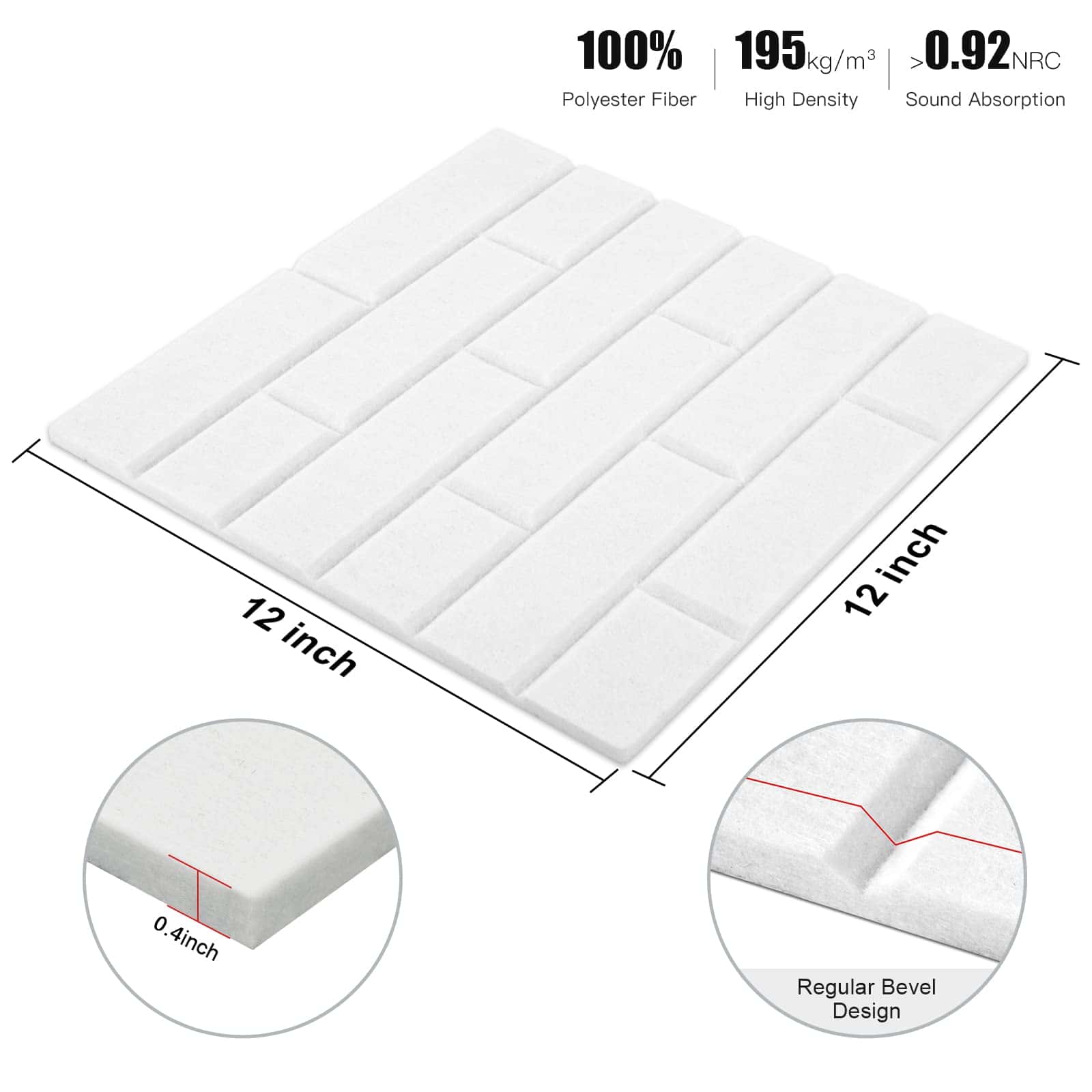 Panel Acústico Autoadhesivo Tutmyrea 12 PCS, 12 X 12 X 0.4