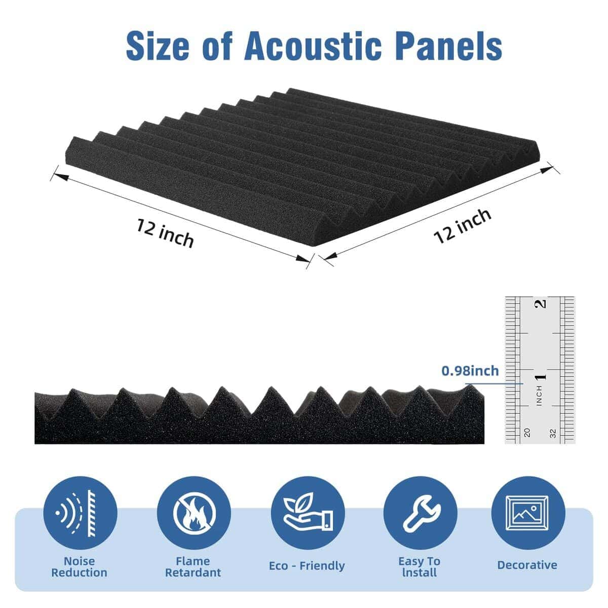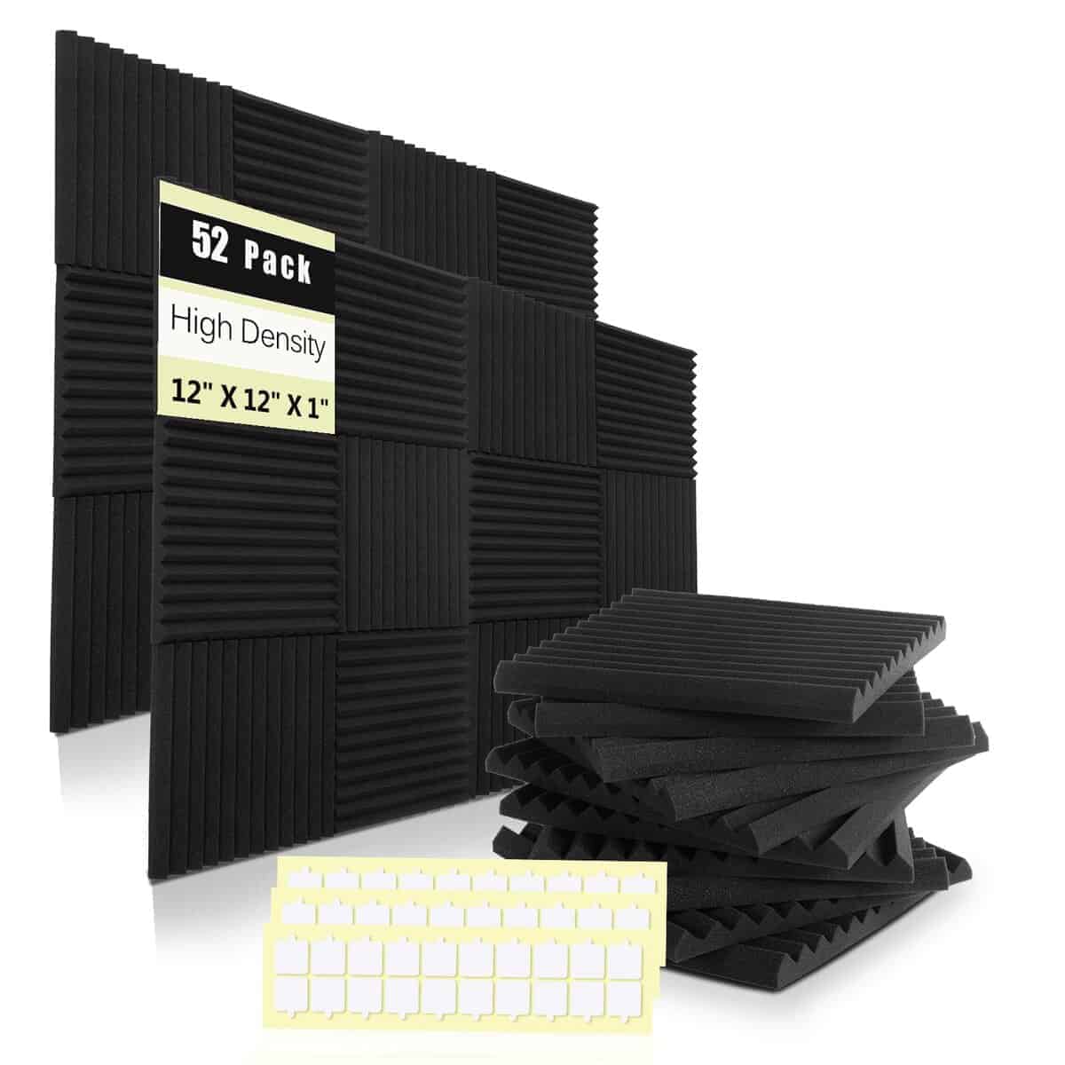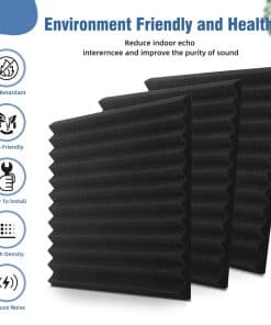 1. Cuñas de espuma de estudio acústico de 1″ x 12″ x 12″ que tienen 1 pulgada de grosor y cubren 1 pie cuadrado.
