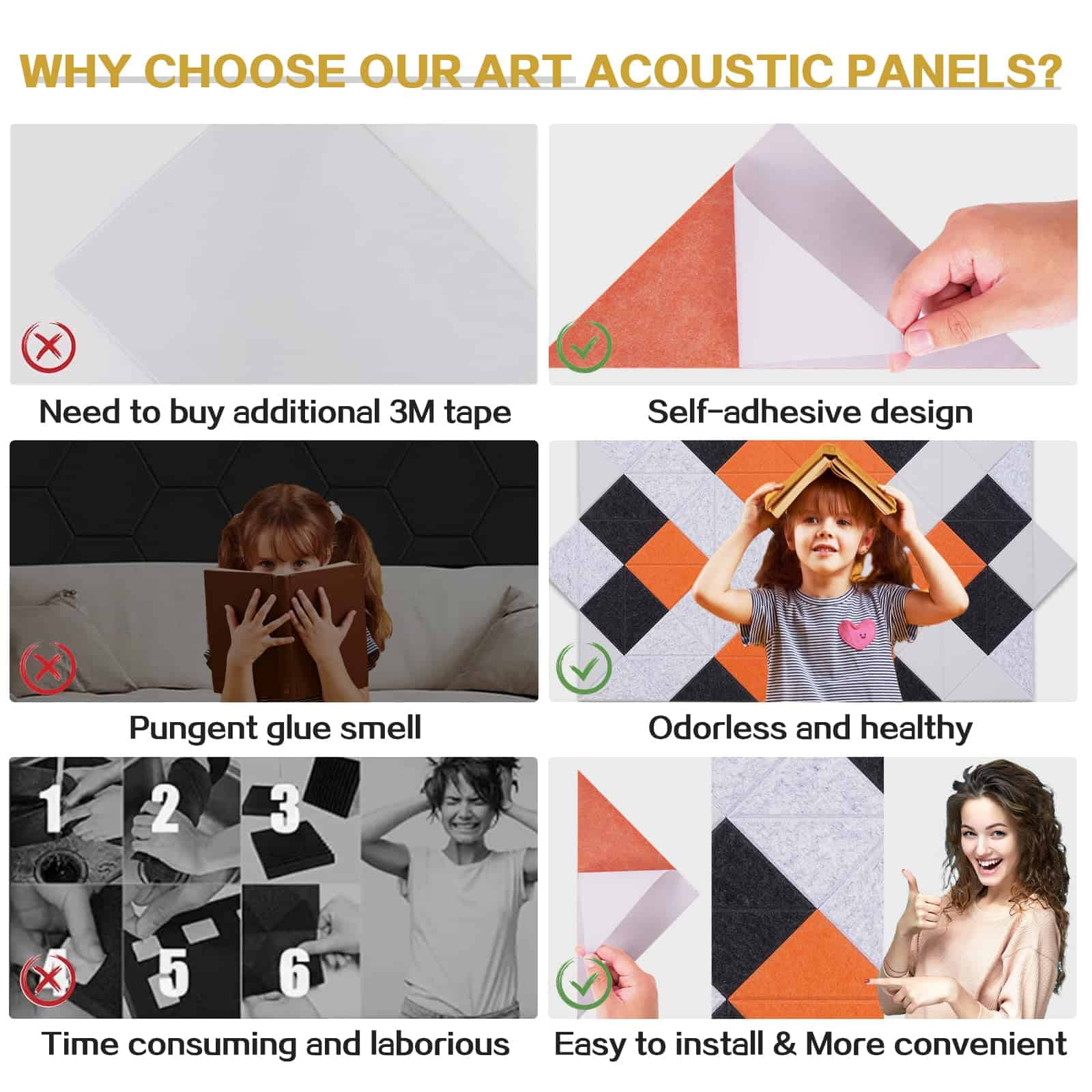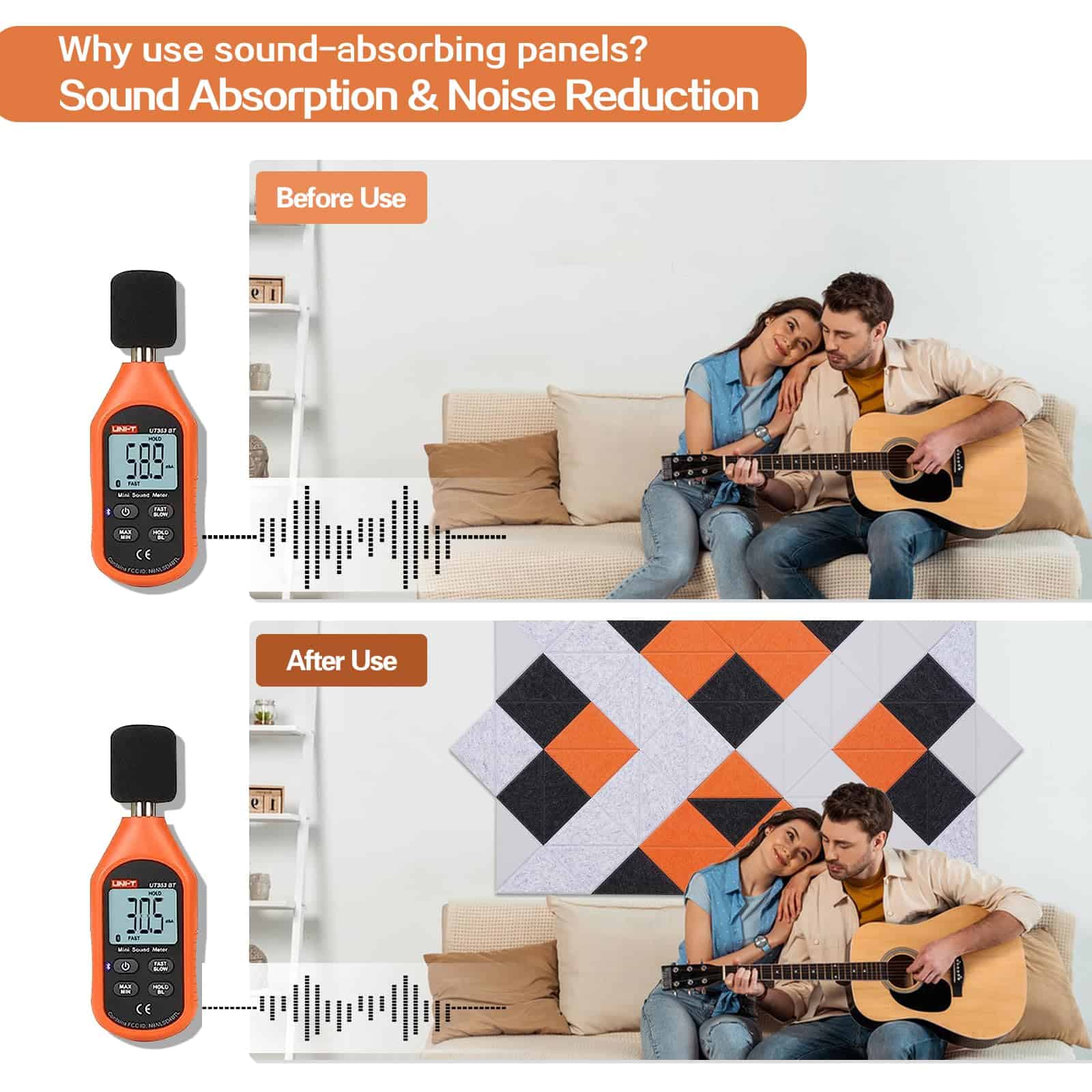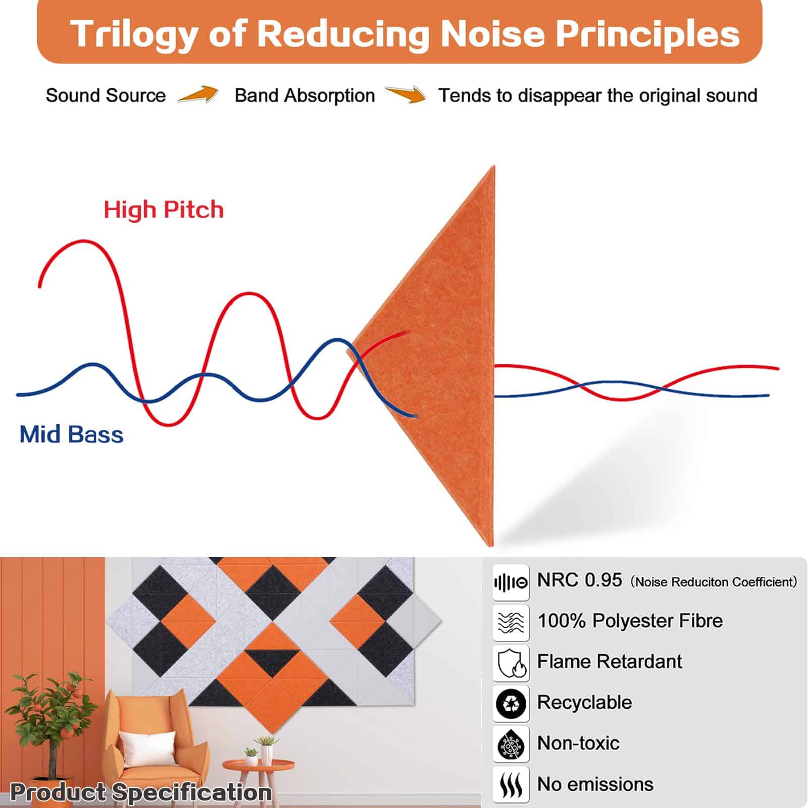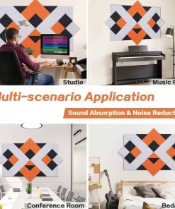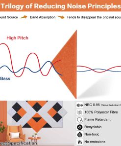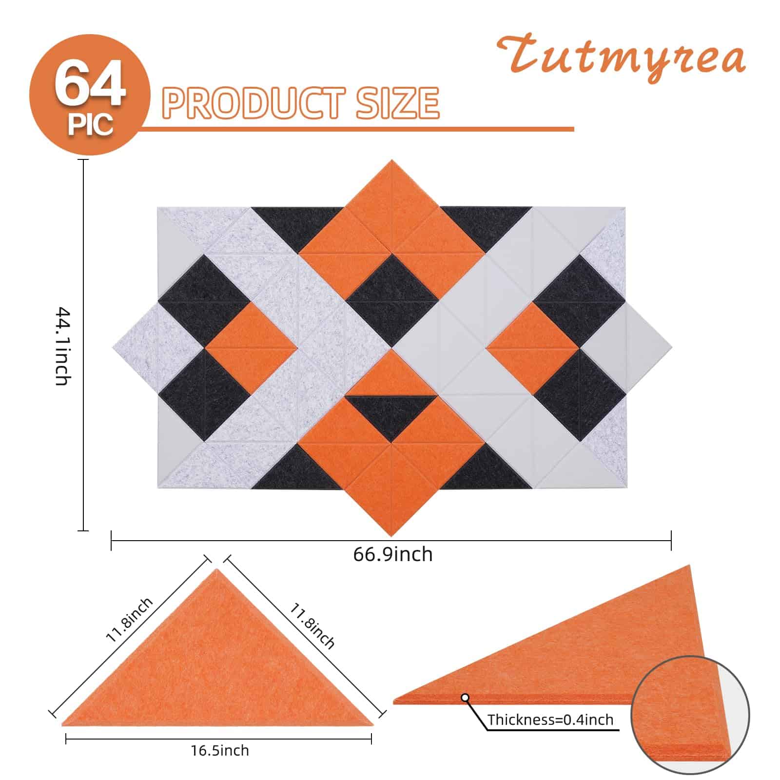 Este panel acústico triangular autoadhesivo de Tutmyrea viene en un paquete de 64 piezas y mide 63×31.5 pulgadas. Posee un diseño único con una variedad de diseños de costura de colores, creando una sensación tridimensional y en capas que agrega puntos de color y diseño a cualquier espacio. Además de su función decorativa, estos paneles integran absorción de sonido, reducción de ruido y decoración de pared, convirtiéndose en la mejor opción para tratamientos acústicos profesionales y diseños creativos de pared. Están construidos con materiales de alta calidad, siendo fabricados con fieltro de fibra de poliéster 100% y una densidad de 9.7 lb/ft, con un coeficiente de reducción de ruido de 0.92. Esto garantiza una mejora significativa en la reducción de ruido, reverberación y absorción de eco, así como una notable mejora en la claridad y calidad del sonido. Su instalación es sencilla gracias a su adhesivo autoadhesivo en la parte posterior, permitiendo que se adhieran fácilmente a cualquier superficie plana, seca y libre de polvo. Estos paneles acústicos son seguros para el uso en interiores al ser no tóxicos, inodoros, libres de formaldehído, retardantes de llamas, resistentes a la corrosión y resistentes a la decoloración. Se pueden utilizar en una variedad de espacios como dormitorios, salas de estar, estudios en casa, salas de grabación, salas de juegos, oficinas, salas de ensayo, entre otros. Además, el equipo de Tutmyrea ofrece un servicio post-venta sin preocupaciones, brindando garantía de satisfacción y soluciones profesionales en caso de problemas con el pedido.