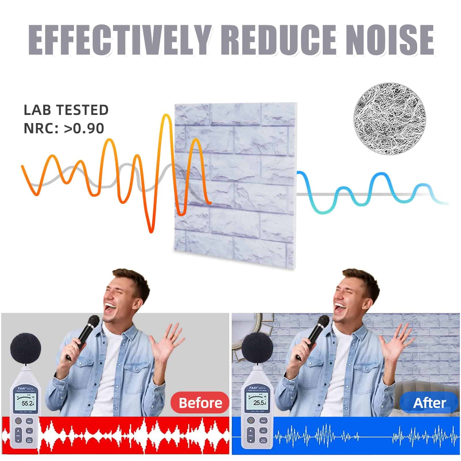 1. DISEÑO DE LADRILLO MEJORADO: Estos paneles absorbentes de sonido actualizados, con un diseño único de ladrillo/piedra en la pared y diseños cuadrados, hacen que el empalme sea más fácil. Perfecto para varias necesidades de tratamiento acústico, cuantos más paneles use, mejor será el efecto general.