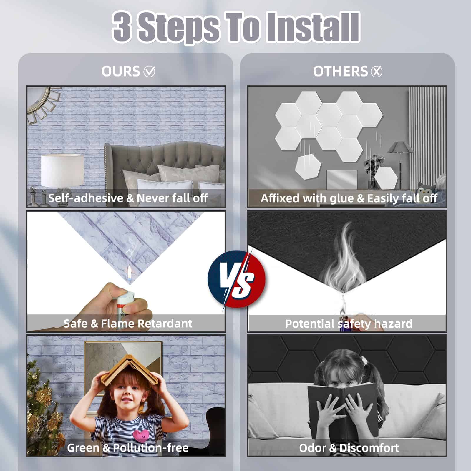3. AUTOADHESIVO Y FÁCIL DE INSTALAR: Los paneles aislantes vienen con un diseño autoadhesivo, lo que los hace fáciles de instalar en cualquier pared lisa o superficie. Simplemente desprende el respaldo y pega el panel en la ubicación deseada.