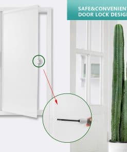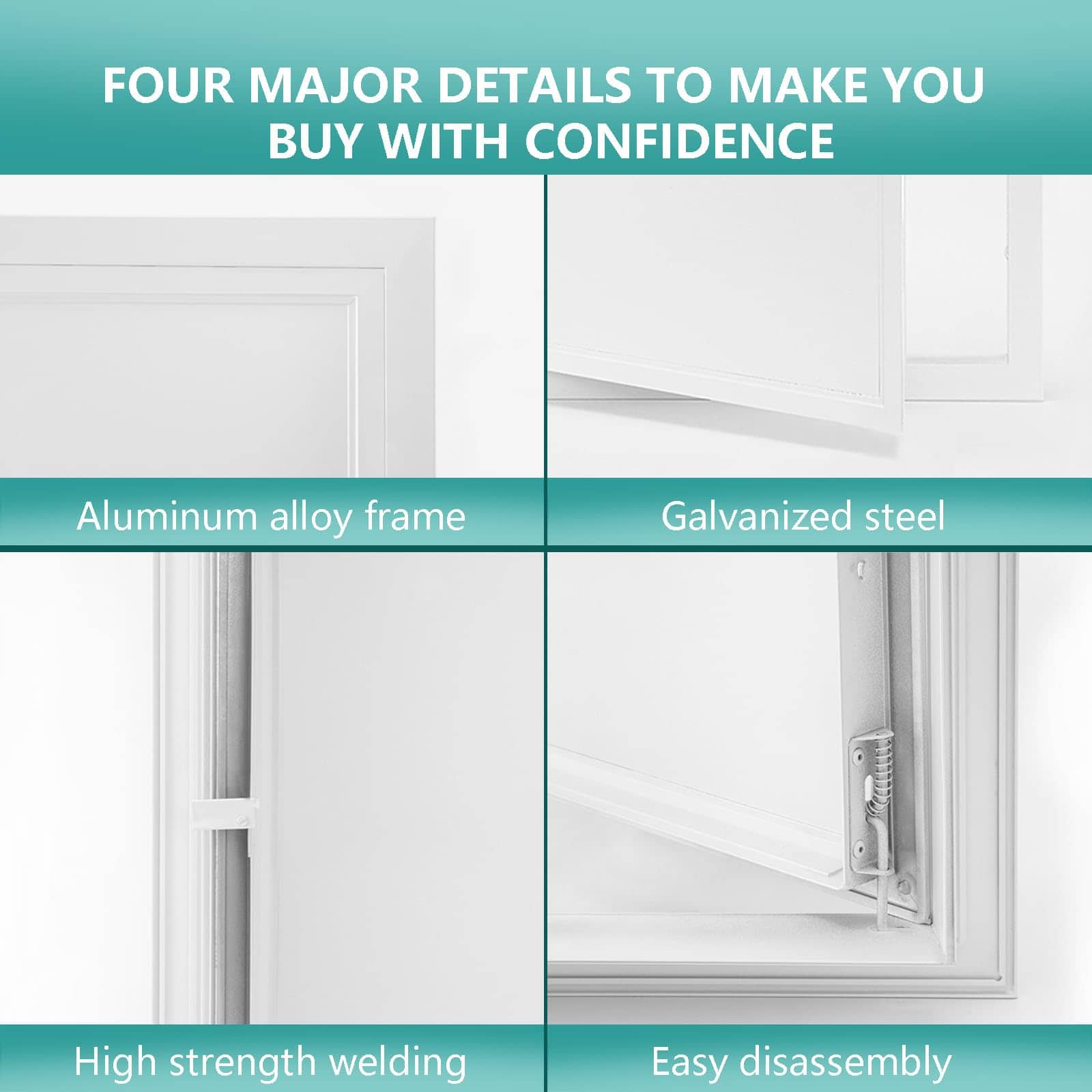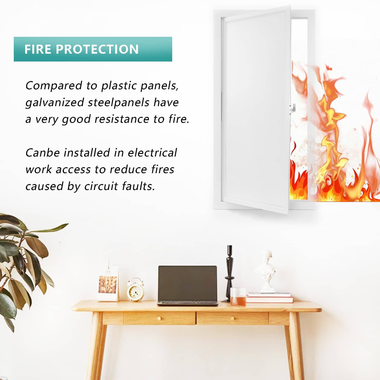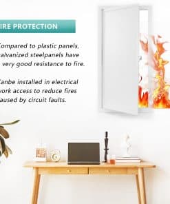 Dimensiones: Panel de acceso metálico 14 x 29, tamaño total es de 15.9 x 30.9 pulgadas, tamaño de instalación es de 14 x 29. Aplicaciones: Panel de acceso de 14 x 29 para tablaroca, techos, eléctrico, plomería, ático, etc. El recubrimiento superficial de las láminas de acero galvanizado puede retardar efectivamente la propagación de llamas, protegiendo así la seguridad de los edificios.