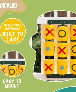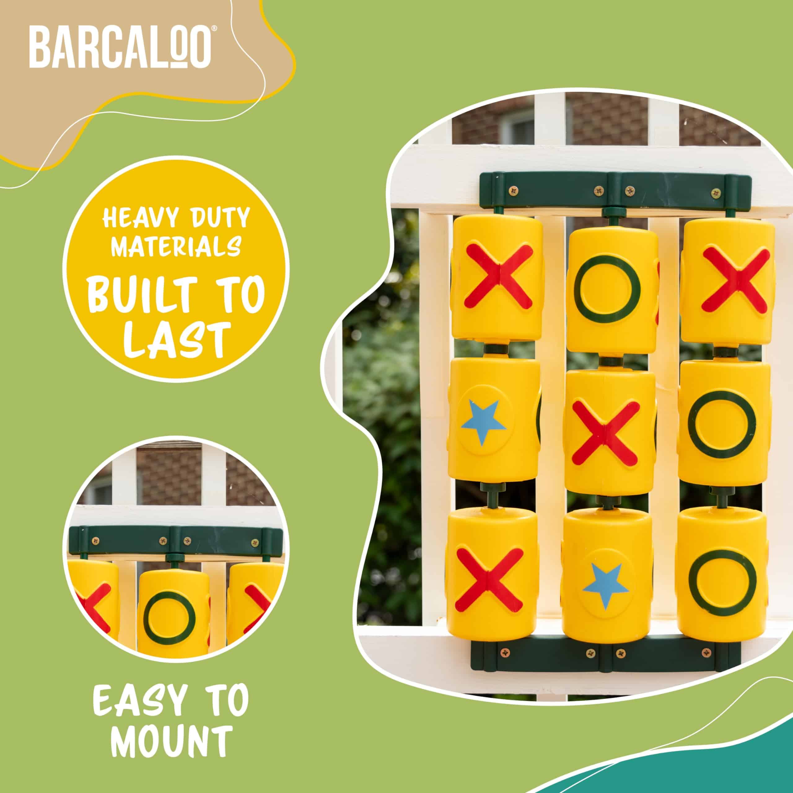 Transforma tu patio trasero en una zona de juegos emocionante con el Panel de Actividades Giratorio Barcaloo Tic Tac Toe para Columpios. Este juego de Tic Tac Toe de gran tamaño es perfecto para niños y adultos que desean divertirse al aire libre. Las piezas giratorias interactivas agregan un toque único y atractivo, mientras que la construcción duradera y protegida contra los rayos UV garantiza diversión sin fin. Además, este accesorio se monta fácilmente en la mayoría de los columpios de madera, lo que lo convierte en una actualización rápida y sencilla para su equipo de juegos. Fomenta la competencia amigable, el pensamiento estratégico y la actividad al aire libre para edades de 3 a 11 años. Con la garantía de por vida de Barcaloo, puedes disfrutar de paz mental mientras juegas al Tic Tac Toe al aire libre.