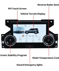 Panel de aire acondicionado totalmente nuevo diseñado para Land Rover Range Rover Discovery 4 LR4 2009-2016. Esta unidad de control de aire acondicionado cuenta con una pantalla táctil LCD de alta resolución de 1920 x 1080, que ofrece una mayor claridad y soporte para funciones originales del coche como aire acondicionado, enfriamiento y calefacción de los asientos, control del aire acondicionado delantero y trasero, desempañador, luces de emergencia peligrosas, sensores de radar de retroceso, ESP, circulación interna, etc. Además, con menú en chino e inglés, modos día y noche y display de terreno Land Rover. Fácil de instalar con plug & play, incluye instrucciones de instalación detalladas. Ofrece servicio postventa y soporte técnico de calidad, con garantía de reembolso de 30 días, reemplazo de 12 meses y soporte técnico de por vida para cualquier pregunta o problema.
