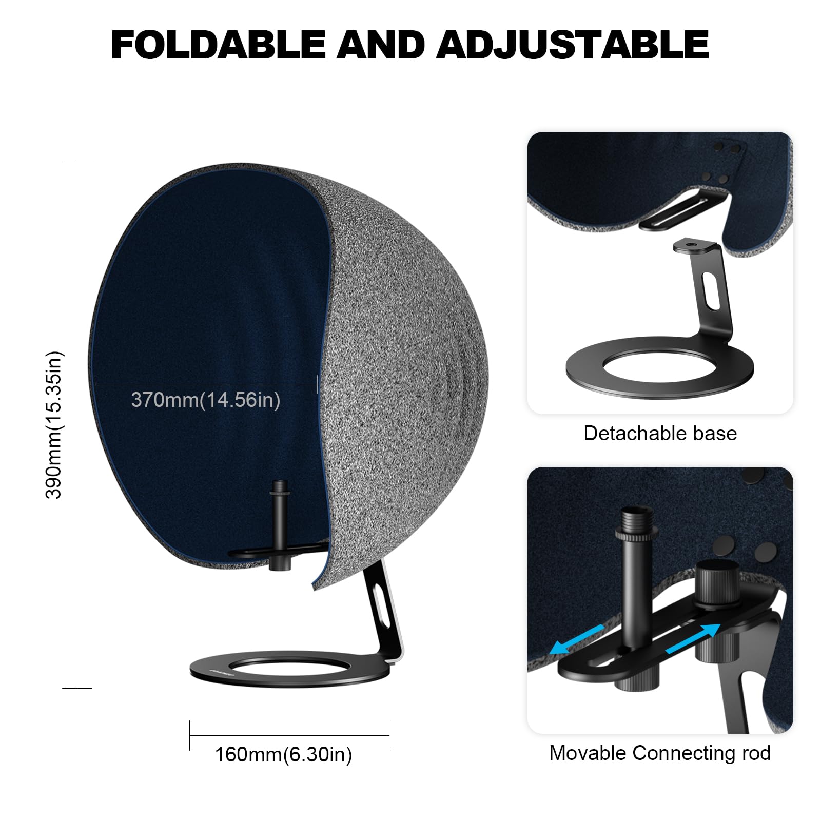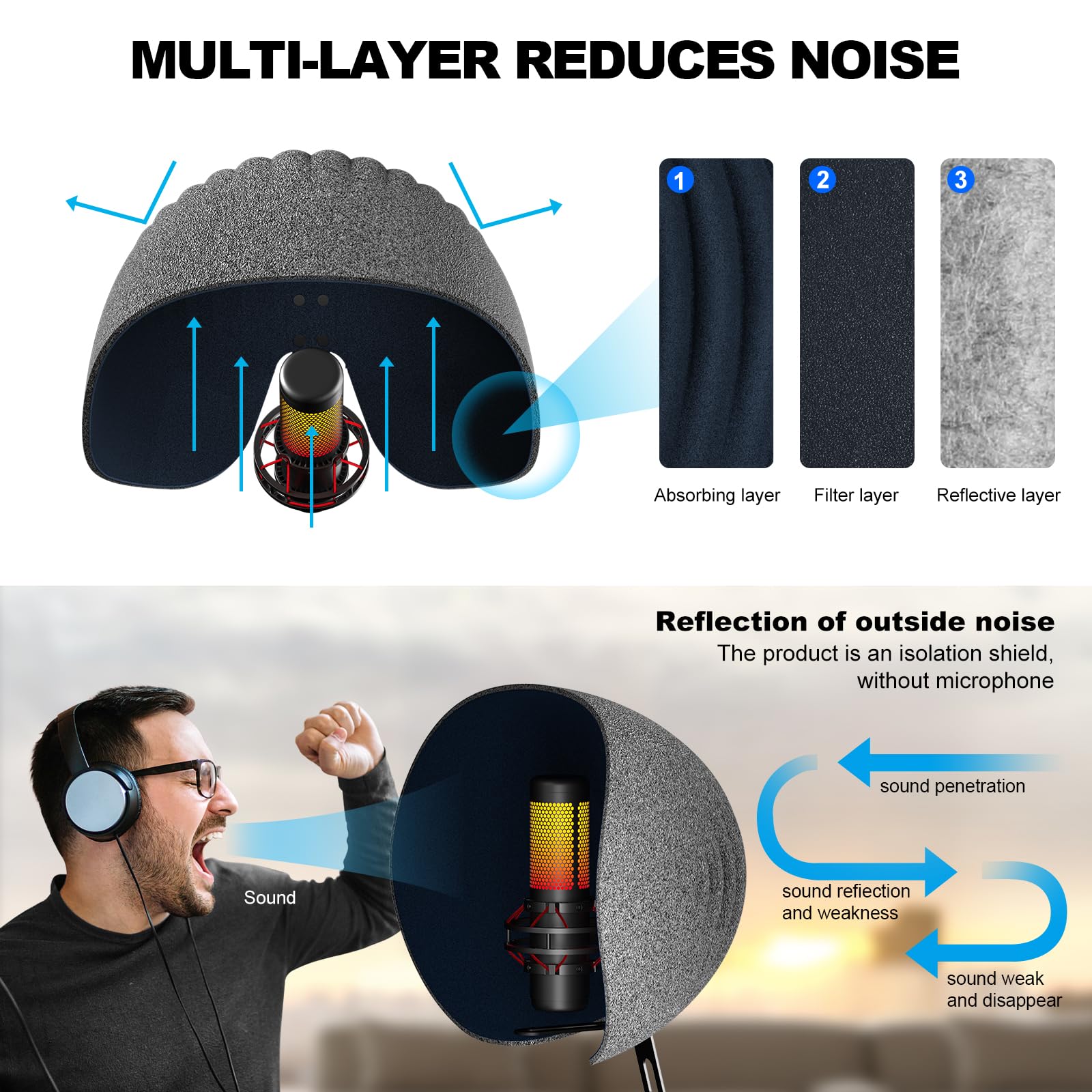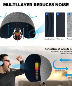 Diseño de doble capa: La capa exterior adopta la tecnología de tablero insonorizado de fieltro PET de alta densidad, bloqueando eficazmente el ruido que entra en tu micrófono. Internamente, se utilizan paneles absorbentes de sonido de baja densidad, junto con nervaduras para la difusión del sonido, absorbiendo eficazmente el exceso de sonido. Para ofrecerte el mejor entorno de grabación para profesionales que buscan un sonido puro. Amplia compatibilidad: Este panel de aislamiento para micrófono tiene un tamaño de 14,4 pulgadas x 12,8 pulgadas x 8,7 pulgadas y viene con un montaje estándar de rosca de micrófono de 3/8″, incluido un adaptador de rosca de 5/8″. Es adecuado para todos los micrófonos y montajes disponibles en el mercado, como HyperX QuadCast, SoloCast, Elgato Wave, Blue Yeti, Blue Snowball iCE, etc. Ligero y conveniente: El panel de aislamiento portátil para micrófono pesa solo 400 gramos, lo que lo hace fácil de llevar y transportar, permitiendo grabaciones en cualquier momento y lugar. Se puede instalar fácilmente en un soporte de brazo de micrófono roscado de 3/8″, un soporte de micrófono de pie o un soporte de absorción de choque para micrófono, y también se puede colocar en un escritorio para su uso. Este equipo de estudio musical es muy adecuado para grabar voces, sonidos de instrumentos, podcasts, doblaje de trabajo, transmisiones en vivo, estudios de grabación profesionales, estudios de radiodifusión y más.