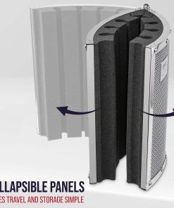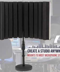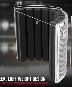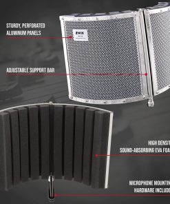 Panel de Aislamiento y Escudo Vocal LyxPro VRI-30 para Grabación de Micrófono en Casa, Oficina y Estudio Portátil y Plegable con Soporte Ajustable. Preserva la claridad de tu voz y el sonido de tu instrumento mientras elimina el rebote de ondas de audio e interferencias al grabar tus canciones y pistas favoritas para ofrecer un sonido claro, nítido y seco con este absorbente de sonido de espuma EVA de alta calidad. La aislamiento de sonido absorbente acústico de alta calidad reduce el ruido y la ambientación de la habitación para crear una condición de grabación óptima en el estudio, la casa u oficina ventilada a través del panel de placa trasera de aluminio perforado. Estos paneles de aluminio y espuma de alta gama, resistentes y ligeros, vienen completamente ensamblados y se ajustan fácilmente a la mayoría de los soportes de micrófono. Simplemente colócalo detrás de tu micrófono para una configuración sencilla; conecta tu micrófono y estarás listo para empezar. Viene con todo el hardware de montaje estándar para facilitar la configuración en la mayoría del equipo de grabación y soportes de micrófono sin la molestia de ensamblaje adicional para crear tu propia cabina de grabación personal de micrófono. Diseño elegante y compacto que mide 19.3″ x 12″ x 3.5″ y pesa apenas 3.75 libras; Se desmonta fácilmente para transportar, ¡100% SATISFACCIÓN GARANTIZADA para cuidar a nuestros clientes con un servicio excepcional de atención al cliente.