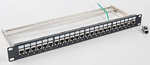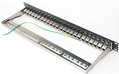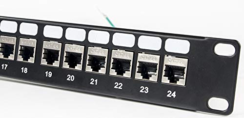 Panel de conexión de paso de acoplador RJ45 CAT6A de 24 puertos con barra trasera, montaje en pared o en bastidor, compatible con Cat5, Cat5e, Cat6, Cat6A, cableado UTP STP. Este panel de conexión cat 6 montado en la pared contiene una barra trasera de acero grueso desmontable. Con bridas, la barra trasera ayuda con la gestión de cables y alivia algo de estrés del acoplador, mejora la estabilidad de trabajo del puerto de conexión de red y evita la suelta de keystone y la aparición de fallos de red.
