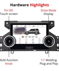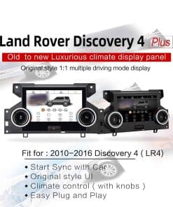 Panel de Control Climático Digital con Pantalla Táctil para Aire Acondicionado diseñado específicamente para Land Rover Discovery 4 LR4 de los años 2009 a 2016. Este panel ofrece una pantalla táctil LCD de alta definición de 7 pulgadas que proporciona una visualización clara y nítida. Con un menú/UI de estilo de fábrica, este panel soporta las funciones originales del automóvil, como el control del aire acondicionado, el enfriamiento y calefacción de los asientos, el control del aire acondicionado delantero y trasero, la descongelación, la luz de emergencia, la circulación interna, la iluminación ambiental, entre otros. Además, cuenta con modos día y noche ajustables, cambiando automáticamente el fondo de acuerdo con la hora del día o los faros del vehículo. La instalación de este panel es muy simple y no destructiva, simplemente Plug to Play para disfrutar de todas las funciones avanzadas que ofrece.