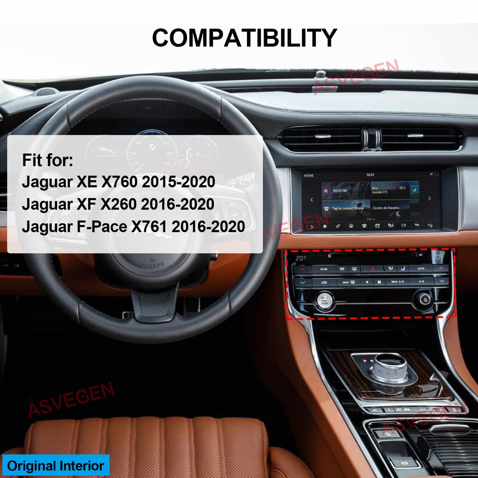 Característica – Específico para Jaguar XE 2015-2019, XEL 2017-2020 Para Jaguar XF 2016-2019, XFL 2017-2020 Para Jaguar F-Pace 2016-2020. – Tamaño de pantalla: 7 pulgadas – Pantalla: pantalla táctil IPS – Resolución: 1024 600 – Modos dobles: Día y noche – Interfaz de usuario de estilo original con terreno – Fácil de instalar, plug and play Función Compatible Control de clima de la zona delantera/trasera Control de calefacción y refrigeración de los asientos de la zona delantera/trasera Soporte de visualización de estado de función de masaje. Modo día/noche (se puede configurar manual y automáticamente). Visualización de cambio de modo de conducción Luces de advertencia ENCENDIDO/APAGADO Control de volumen Lista de empaque 1x Panel de Control de Clima con Pantalla Táctil 1x Cable Nota 1.Si tiene problemas al instalar el artículo, contáctenos para obtener ayuda. Se recomienda la instalación por profesionales.