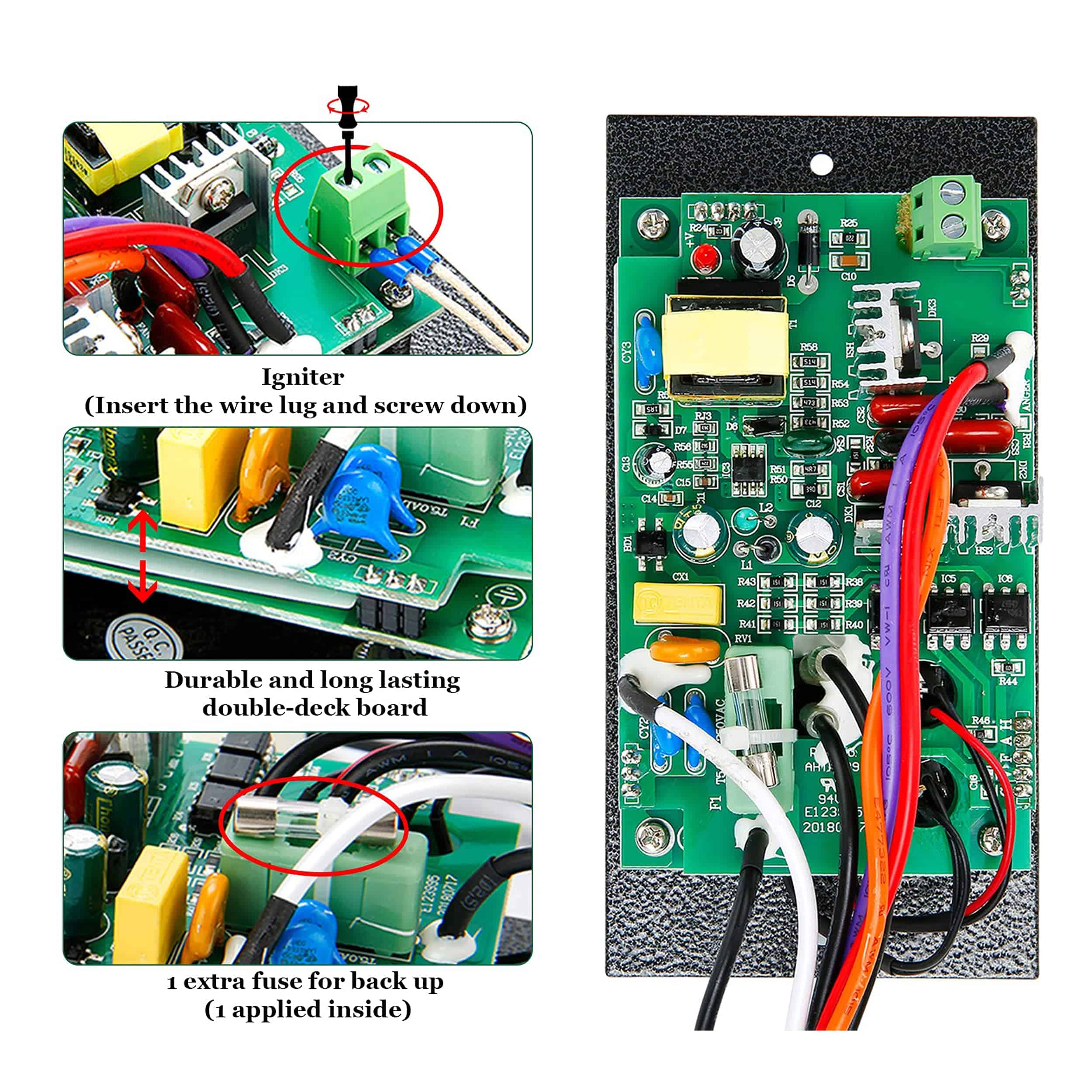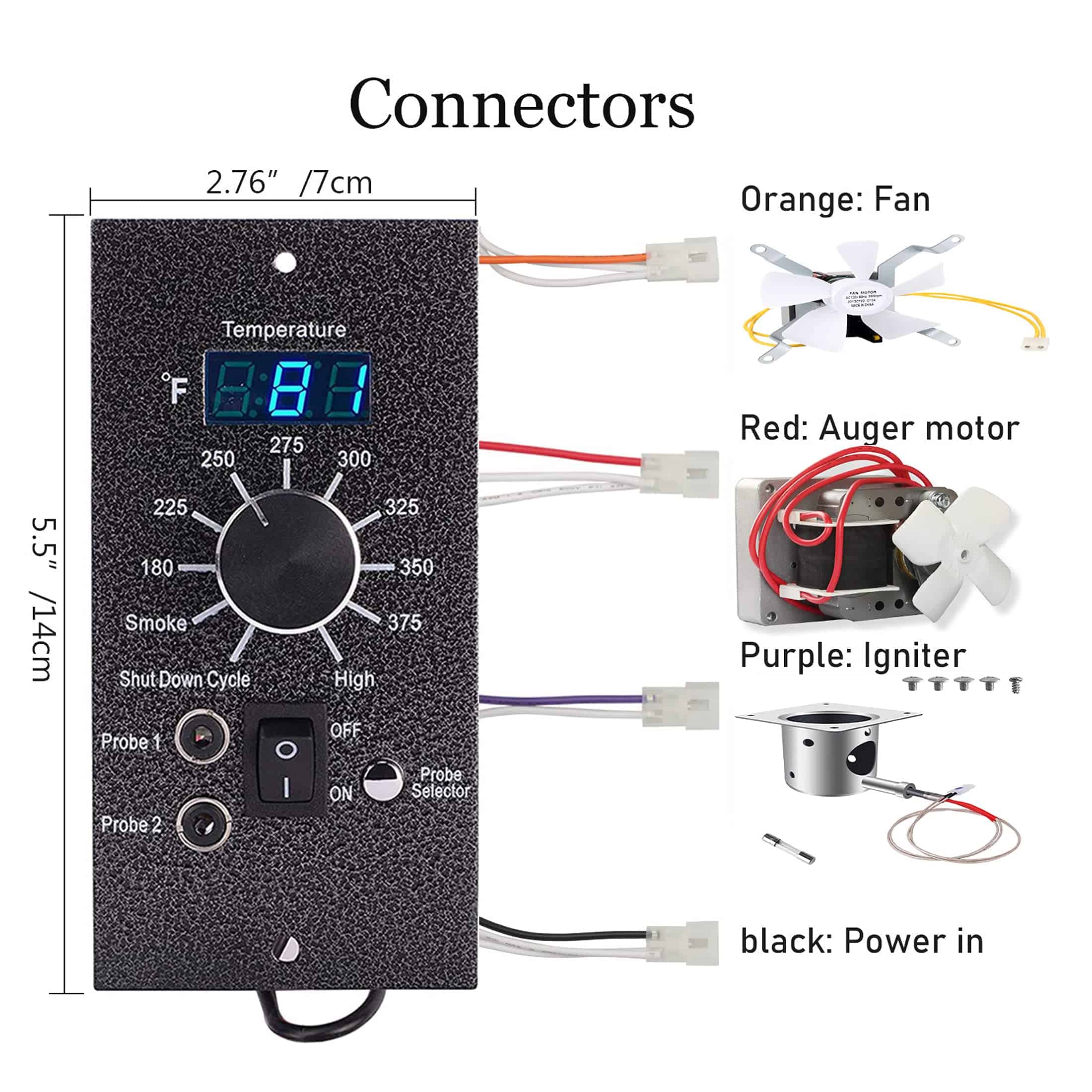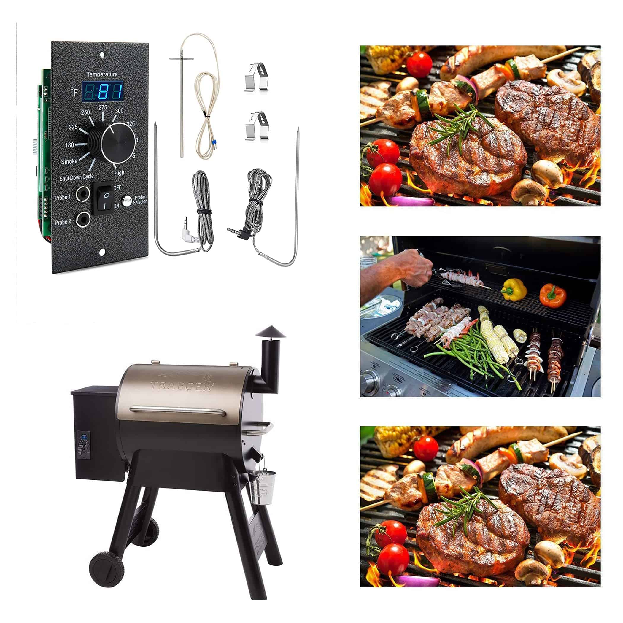 Incluye pantalla digital de temperatura LED equipada con dos sondas integradas para reducir la cantidad de cenizas residuales. No requiere montaje. El panel de control universal se ajusta a las parrillas de pellets Traeger Pro 20, 22, 34 para reemplazar el controlador de la Serie Bac365 Pro. Paquete incluye: Un panel de control de temperatura digital, una sonda de temperatura RTD, dos sondas de carne y el hardware necesario. Perilla de aluminio de alta calidad para cambiar los modelos y ajustar el rango de temperaturas de 180 a 450 grados. Reemplaza el controlador de 3 velocidades de ahumador, compatible con los modelos de parrillas de pellets de madera Traeger (excepto PTG). Controlador Pro Mejorado: fácil de mostrar la temperatura precisa y también se puede leer a plena luz del sol a través de nuestro controlador digital Pro.