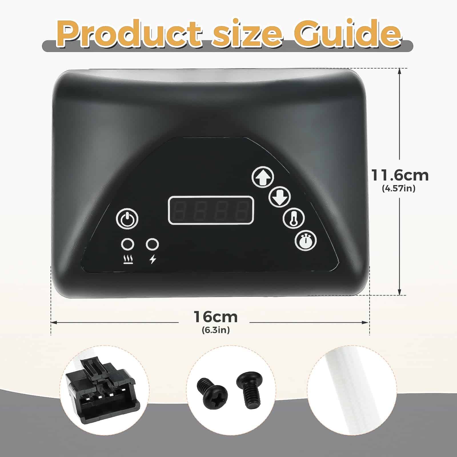 Nuestro termostato digital para ahumador de repuesto para Masterbuilt está hecho de material resistente al calor y probado por el fabricante para cumplir con los estándares OEM y garantizar un servicio más prolongado. Este termostato de control digital puede reemplazar el número de parte: 9907160014, y es compatible con los ahumadores eléctricos Masterbuilt de 30″/40″: 20071117, 20071217, 21071218, 20071317, 20071417, 20071517, 20071819, 20072318, 20074517, MB20070421, MB20071117, MB20071619, MB20071819, MB20072918, MB20073018, MB20077018, MB20077818, MB21072918, MB25071217 MB26071317, MB28071517, etc. El panel de control digital viene con una pantalla LED brillante. Puede leer la temperatura claramente bajo la luz solar. Con este tablero de control termostático de repuesto para Masterbuilt, puede conocer la temperatura precisa de su parrilla de manera oportuna. Hay cinco botones (ON/OFF, FLECHA ARRIBA, FLECHA ABAJO, TEMPORIZADOR, TEMPORIZADOR DE AJUSTE), y dos luces piloto (CALEFACCIÓN, ENERGÍA). Puede ajustar la temperatura según los alimentos que esté asando. Recibirá 1 x Tablero de control digital 9907160014 termostato de repuesto para Masterbuilt Electric Smoker, 2 x tornillos.