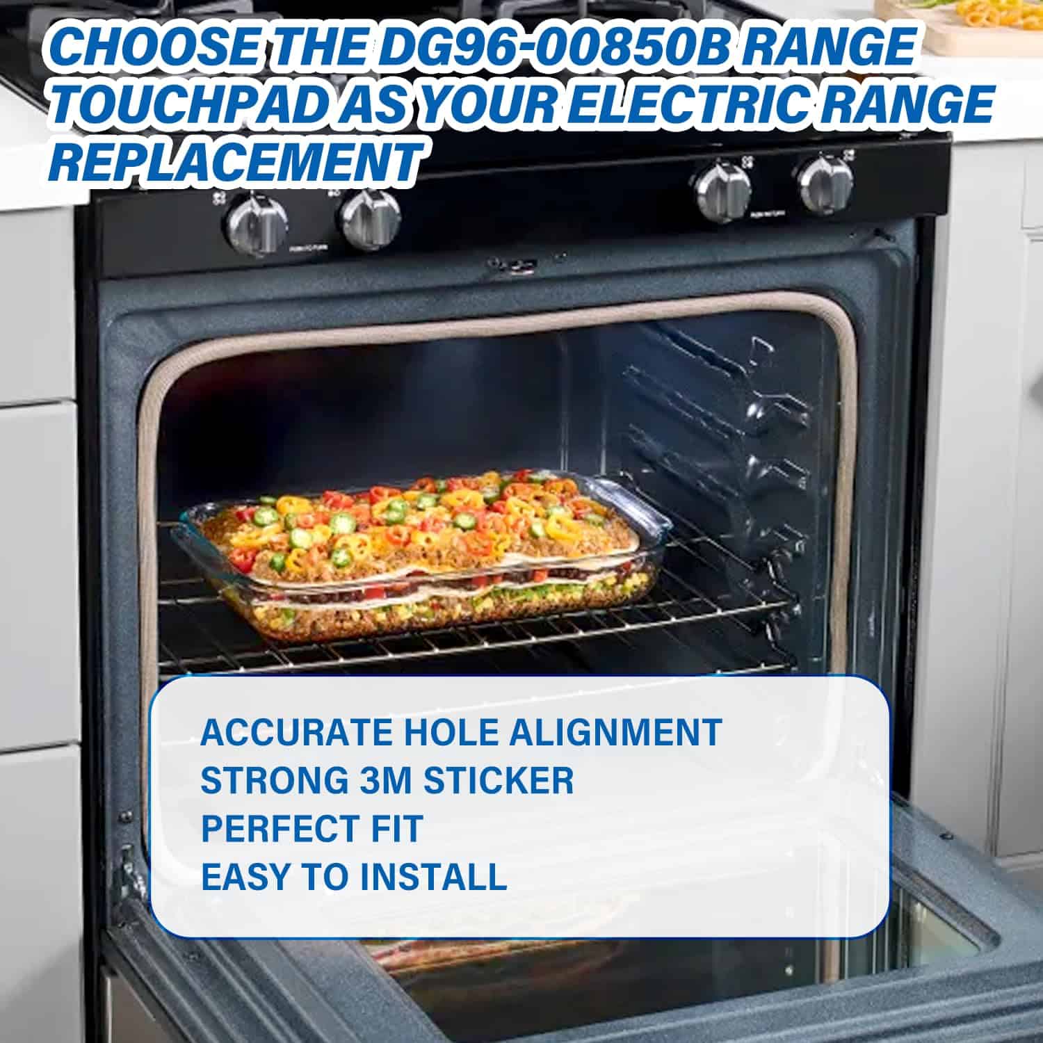 3. Compatible con El panel de control táctil de membrana DG96-00850B compatible con la gama de gas Samsung: NX60A6511SB/AA-00, NX60A6511SG/AA-00, NX60A6511SS/AA-00, NX60A6511SS/AA-01, NX60A6511SS/AA-02.