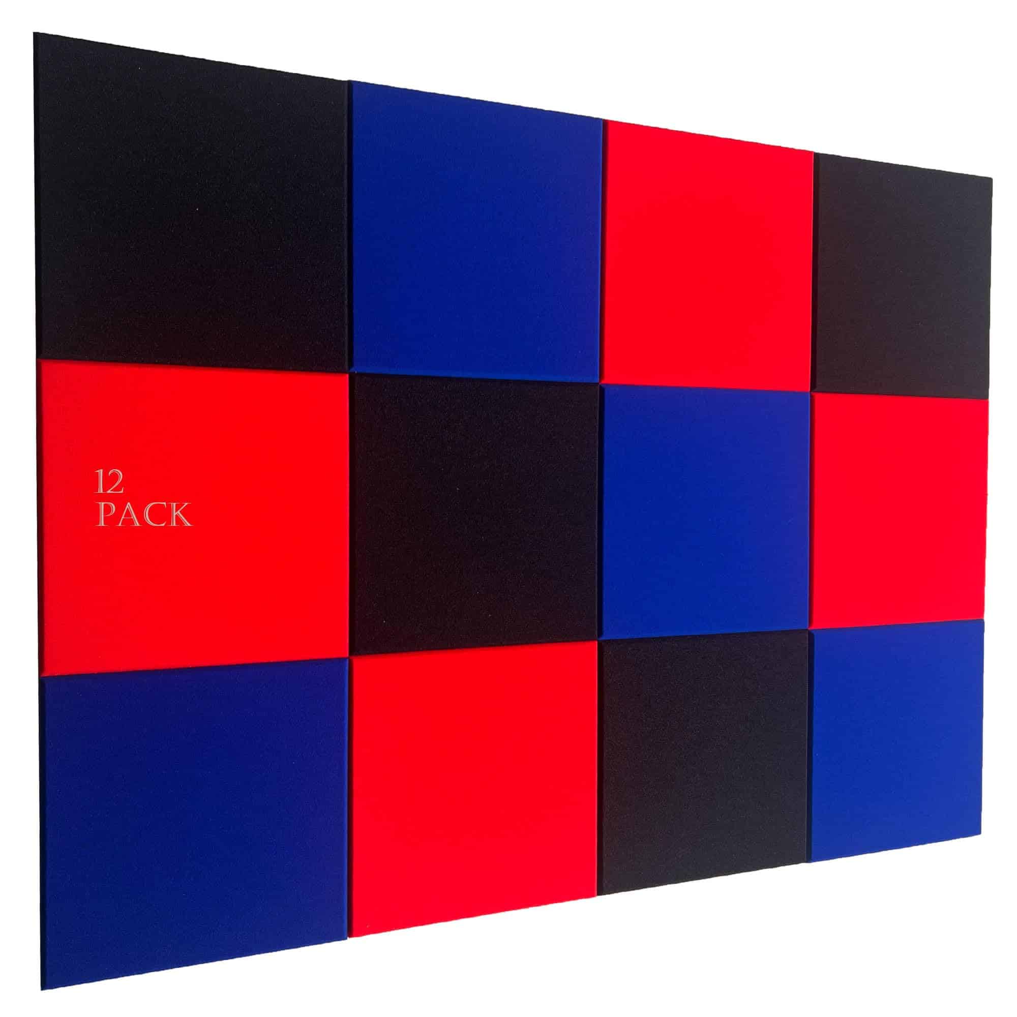 Panel de Espuma Acústica en Cuña Negra/Roja/Azul 12 Pack –