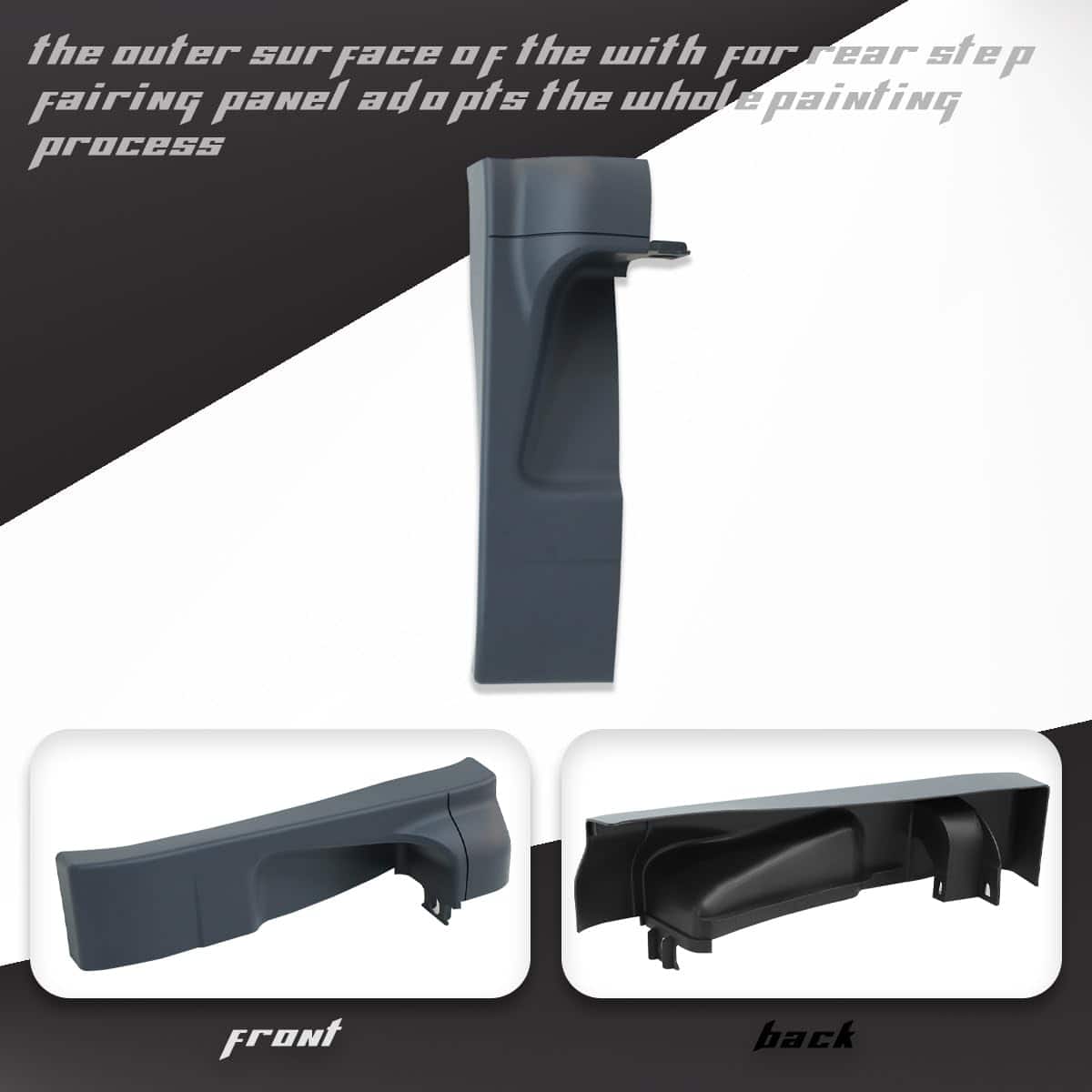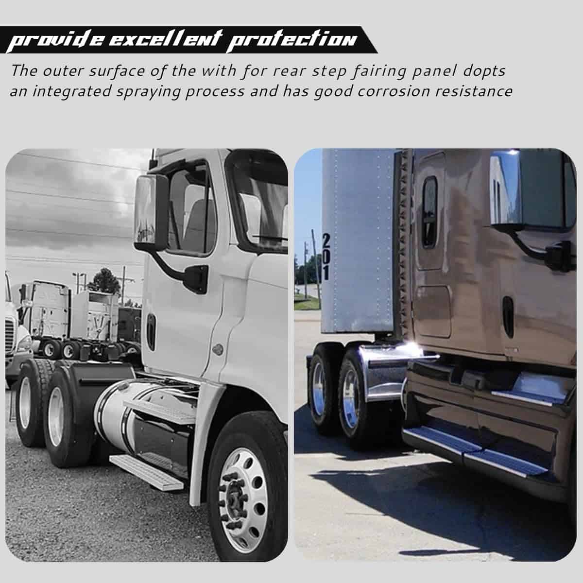 Panel de extensión de carenado trasero para Freightliner Cascadia 2008-2017. Puede prevenir efectivamente que peatones, bicicletas, vehículos eléctricos y otros vehículos no motorizados sean arrastrados debajo del vehículo durante una colisión lateral, reduciendo así las lesiones en accidentes de tráfico. Fabricado con material ABS que ofrece estabilidad, resistencia a la corrosión química y es respetuoso con el medio ambiente. Fácil instalación con pernos y garantía de servicio al cliente.
