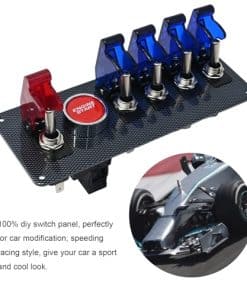 1. Panel de interruptores versátil: este panel de 5 en 1 incluye un botón interruptor basculante LED y un interruptor de encendido, lo que lo hace perfecto para la modificación de coches de bricolaje. Añade un aspecto deportivo y fresco a tu vehículo, especialmente adecuado para los entusiastas del estilo de carreras de alta velocidad.