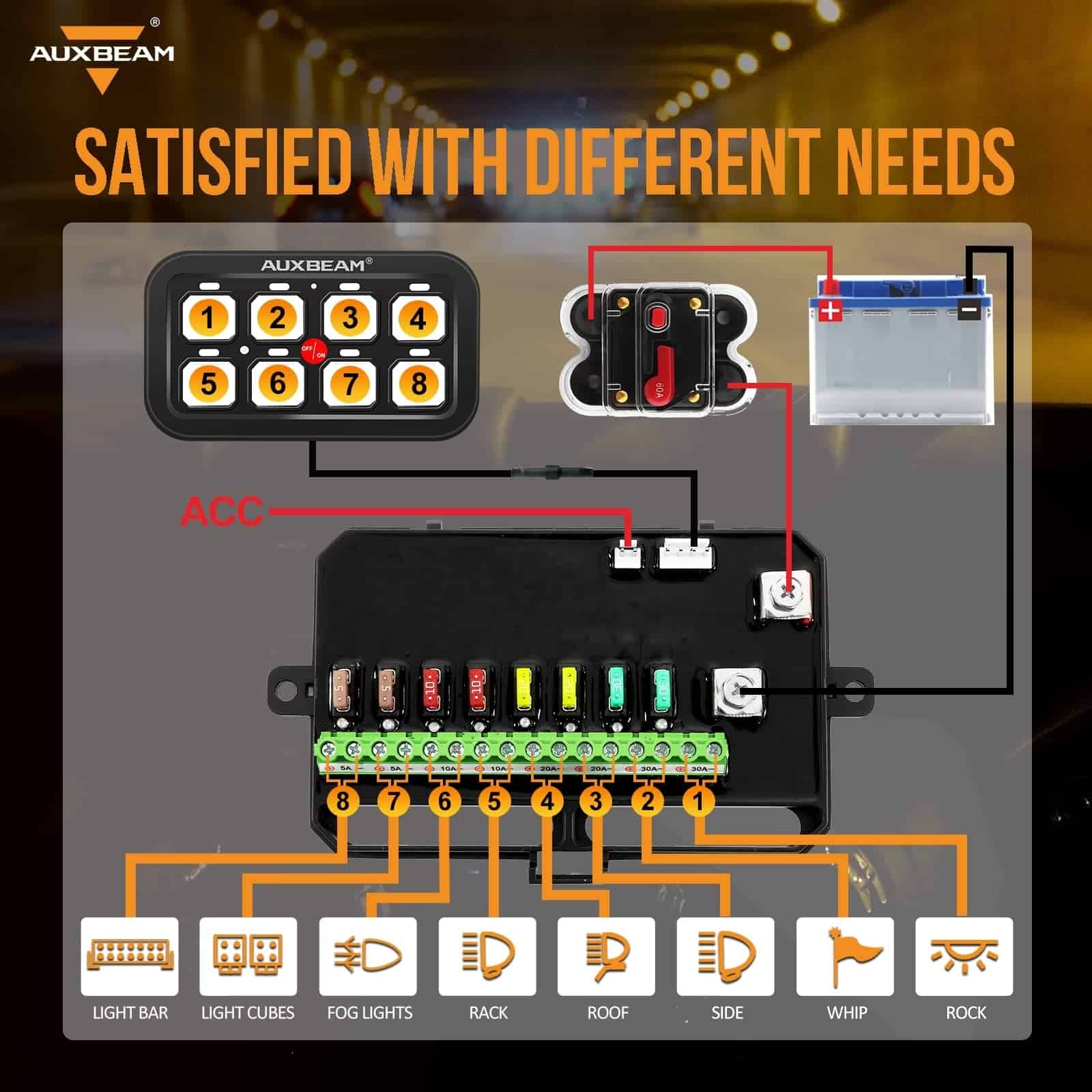 Panel de Interruptores Auxbeam 8 Gang GA80 Sistema de Relé