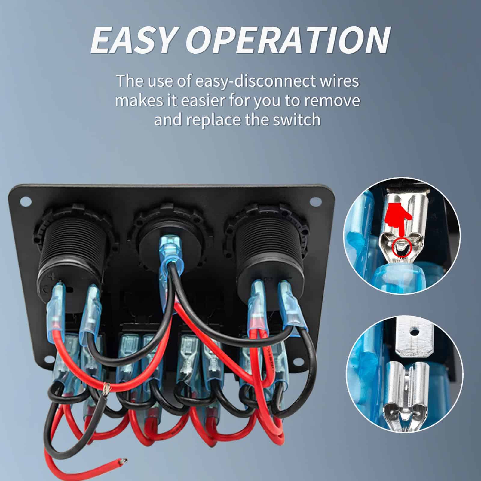 2. Panel de interruptores basculantes RESISTENTE, DURADERO, IP65 impermeable hecho de plástico de alta calidad y pines bien conductores; asegura durabilidad duradera, altamente optimizado para uso general. El panel de interruptores basculantes tiene un rendimiento de sellado excelente alcanzando impermeabilidad ip65, te dará una experiencia agradable.
